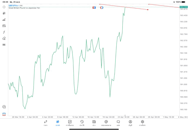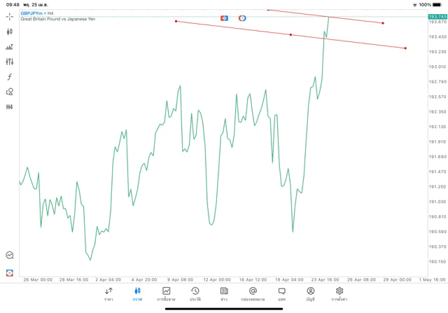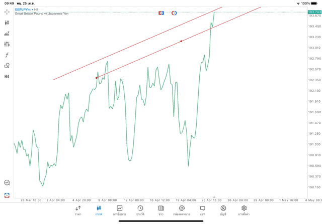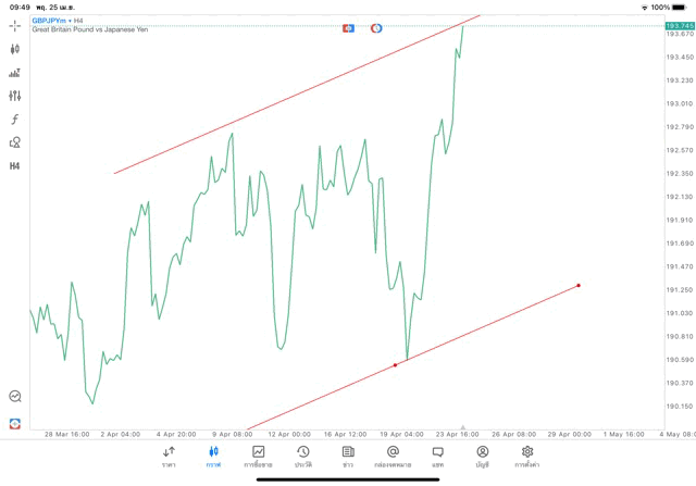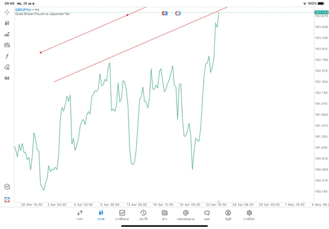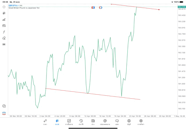 การวาด Trendline H4 Forex GBPJPY application Meta trader 5 หรือ mt5 โบรกเกอร์ forex exness
