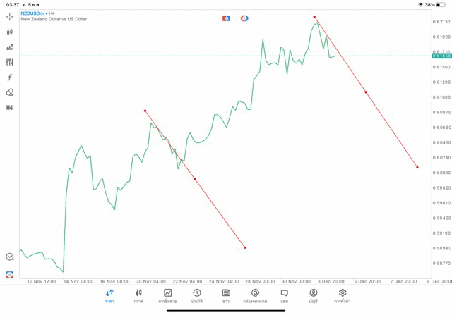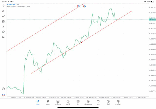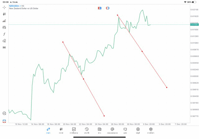 การวาด Tradeline H4 Forex NZDUSD application Meta trader 5 หรือ mt5 โบรกเกอร์ forex exness