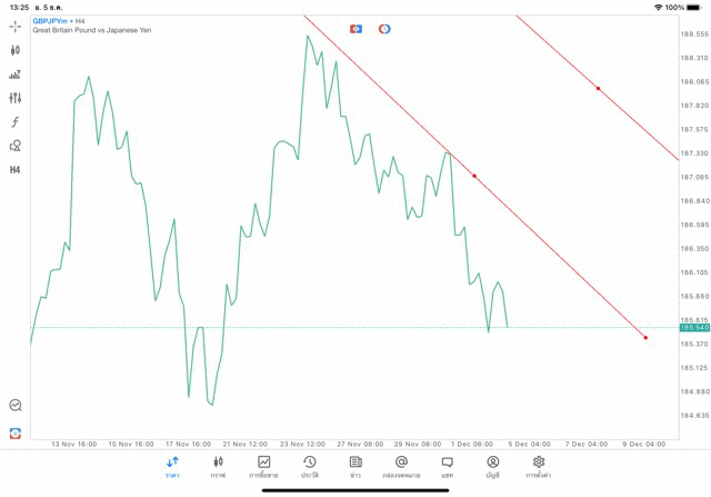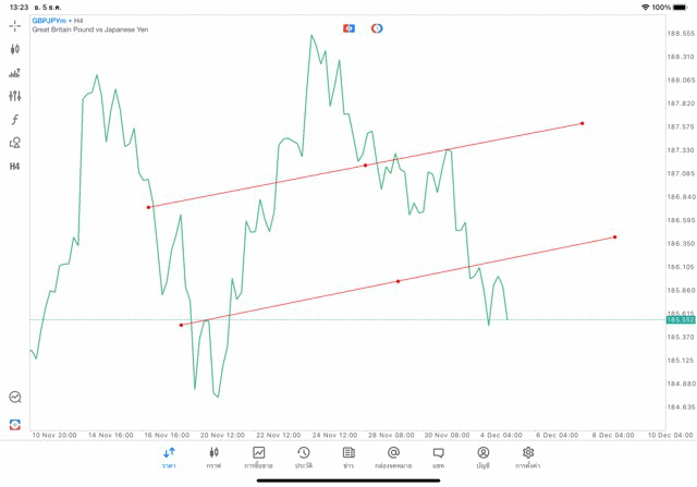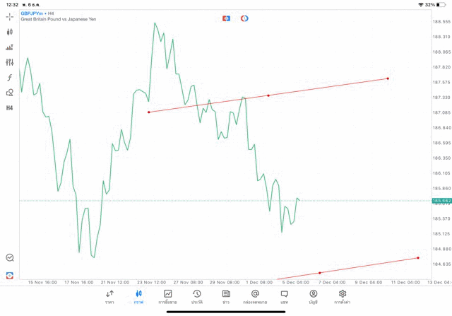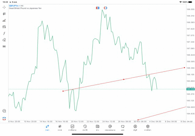 การวาด Tradeline H4 Forex GBPJPY application Meta trader 5 หรือ mt5 โบรกเกอร์ forex exness