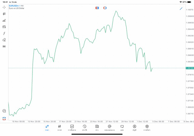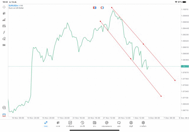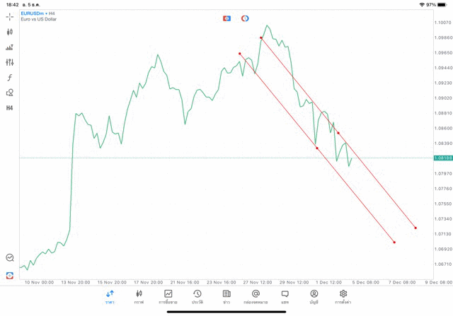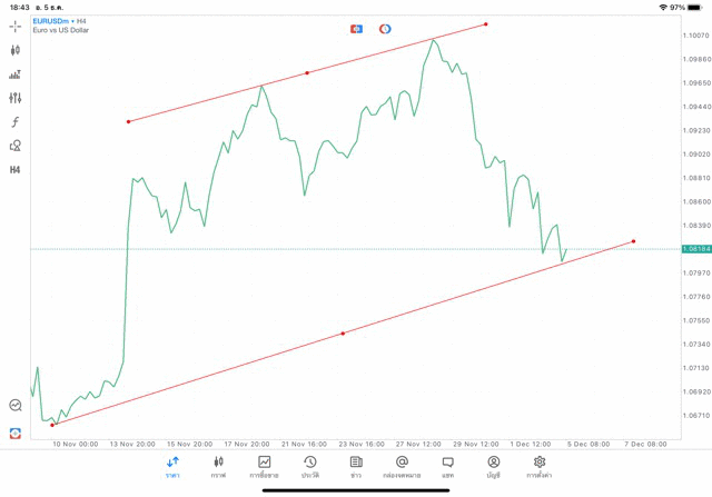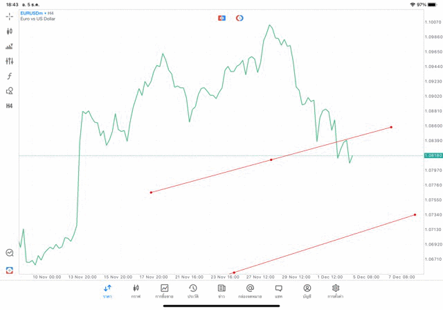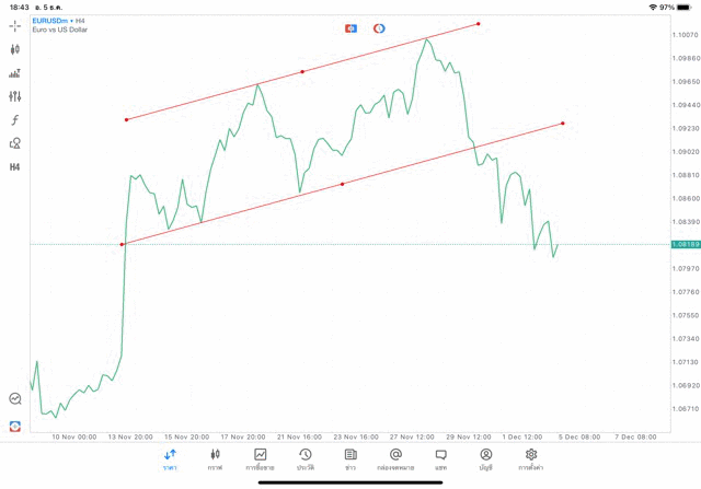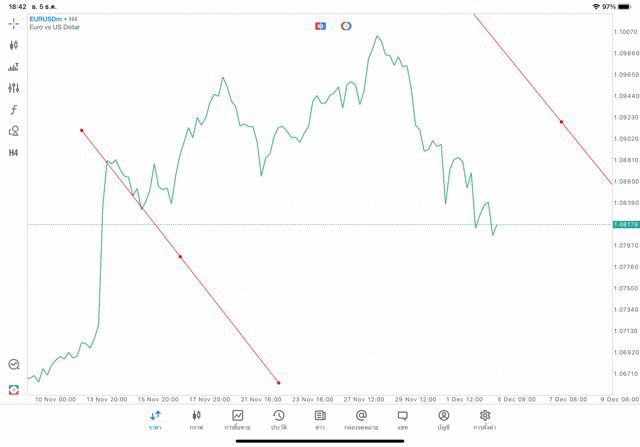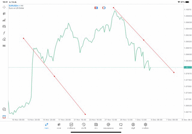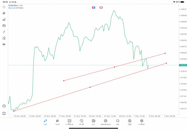 การวาด Tradeline H4 Forex EURUSD application Meta trader 5 หรือ mt5 โบรกเกอร์ forex exness