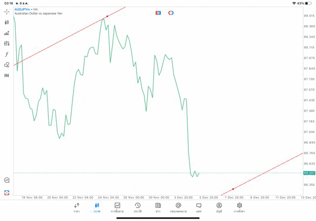 การวาด Tradeline H4 Forex AUDJPY application Meta trader 5 หรือ mt5 โบรกเกอร์ Forex exness