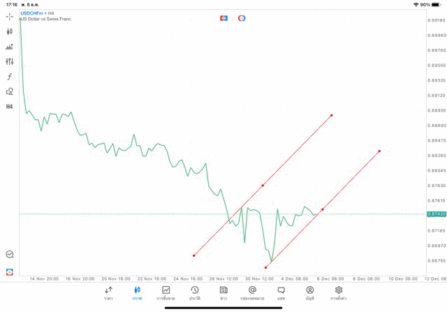 การวาด Tradeline H4 Forex USDCHF application Meta trader 5 หรือ mt5