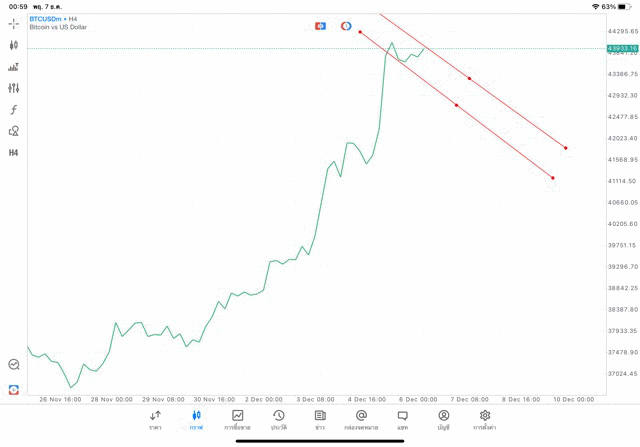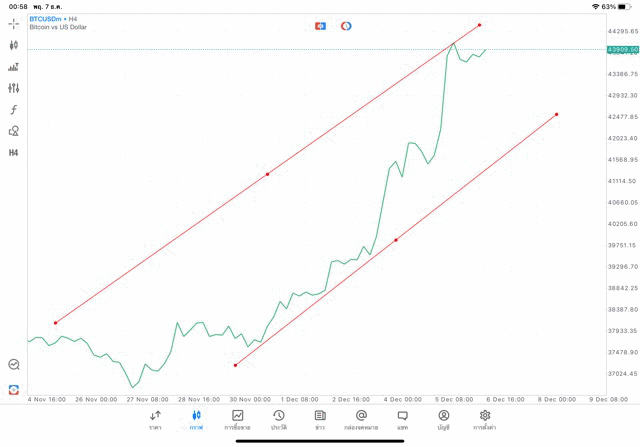 การวาด Tradeline H4 Crypto BTCUSD application Meta trader 5 หรือ mt5 โบรกเกอร์ forex exness
