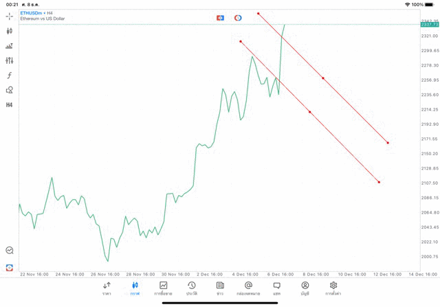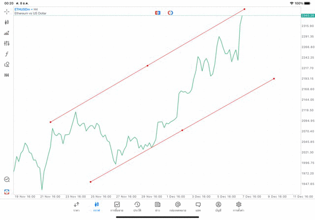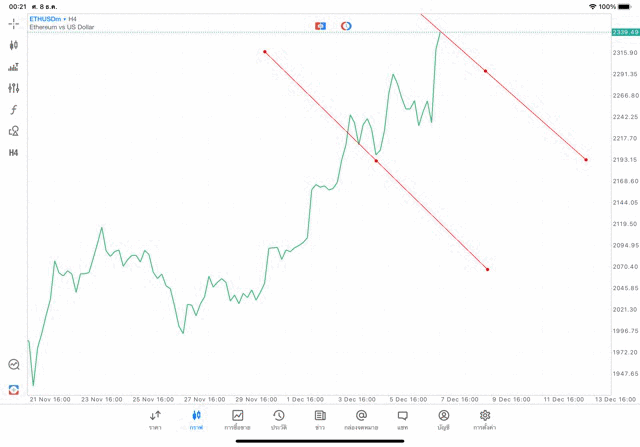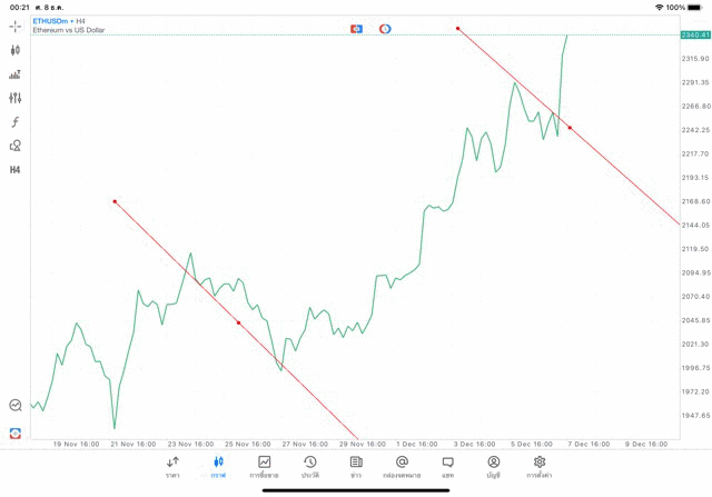 การวาด Tradeline H4 Crypto ETHUSD application Meta trader 5 หรือ mt5 โบรกเกอร์ forex exness
