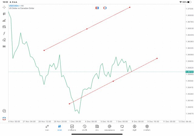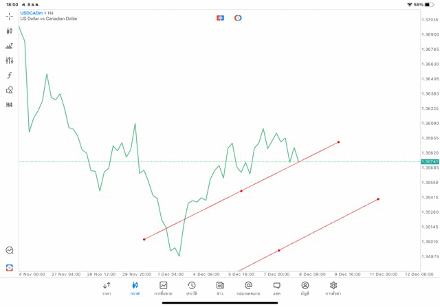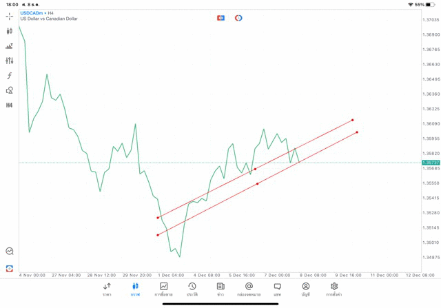 การวาด Tradeline H4 Forex USDCAD application Meta trader 5 หรือ mt5