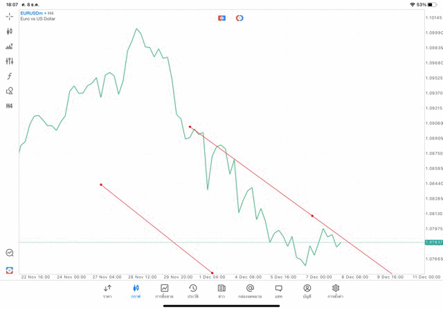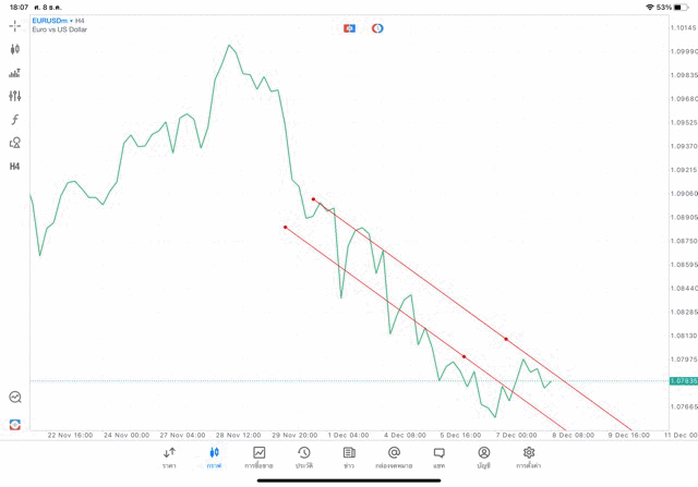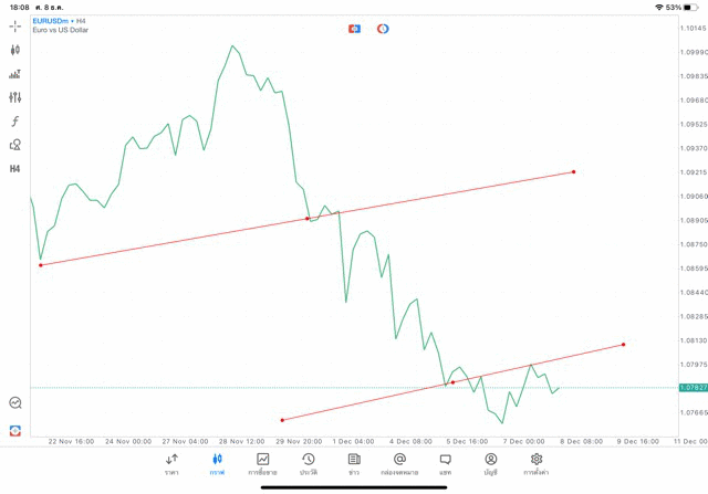 การวาด Tradeline H4 Forex EURUSD application Meta trader 5 หรือ mt5 โบรกเกอร์ forex exness