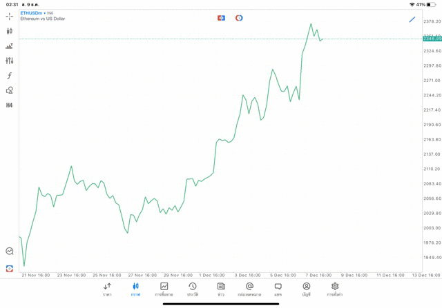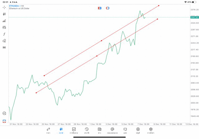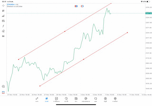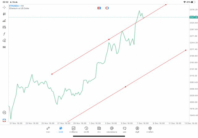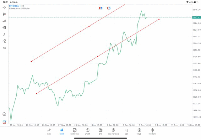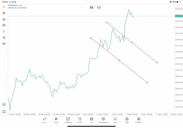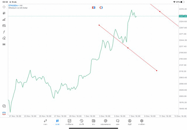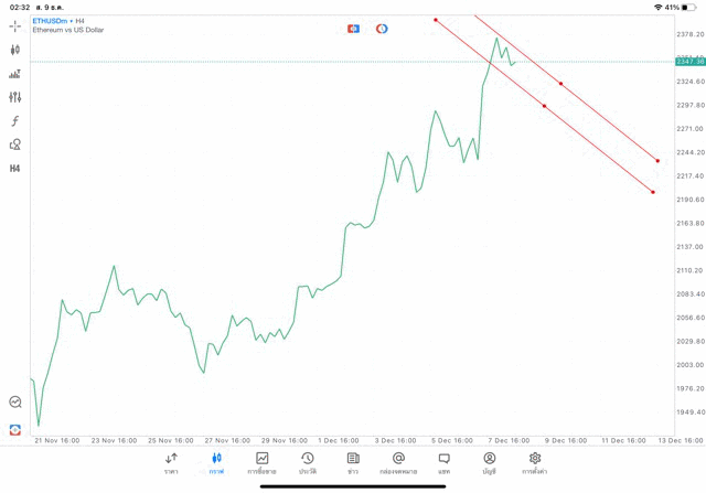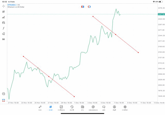 การวาด Tradeline H4 Crypto ETHUSD application Meta trader 5 หรือ mt5 โบรกเกอร์ forex exness
