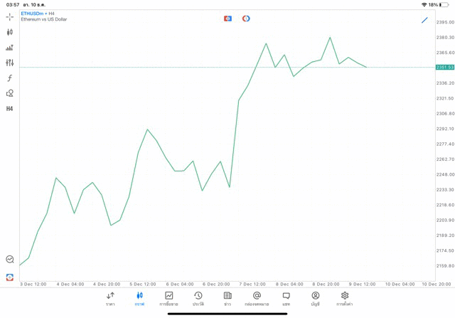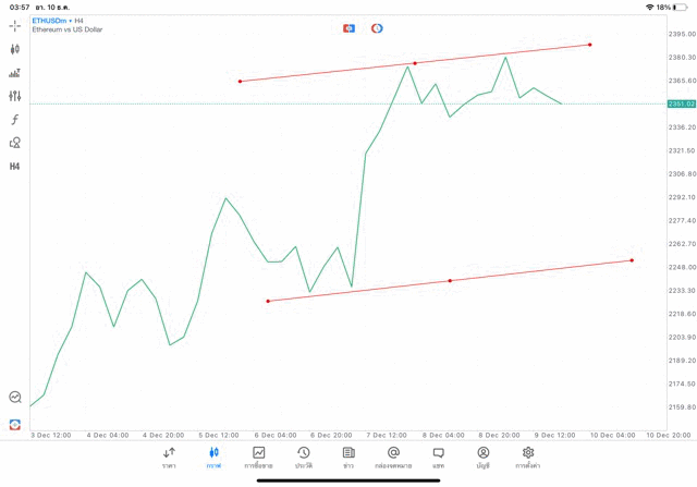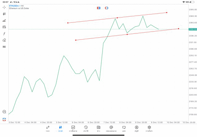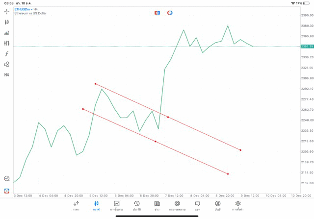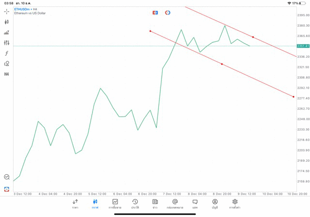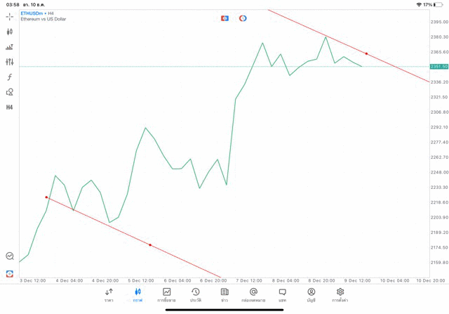 การวาด Tradeline H4 Crypto ETHUSD application Meta trader 5 หรือ mt5 โบรกเกอร์ forex exness