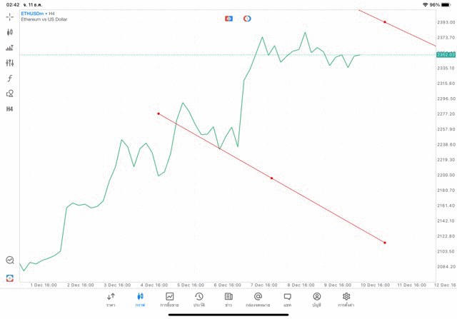การวาด Tradeline H4 Crypto ETHUSD application Meta trader 5 หรือ mt5 โบรกเกอร์ forex exness