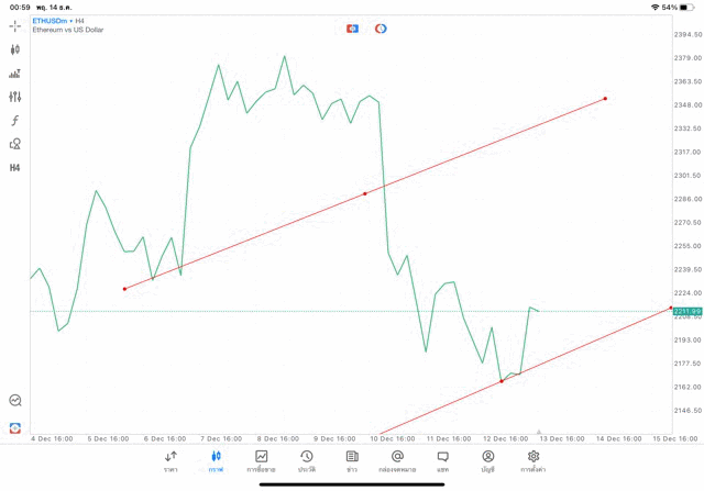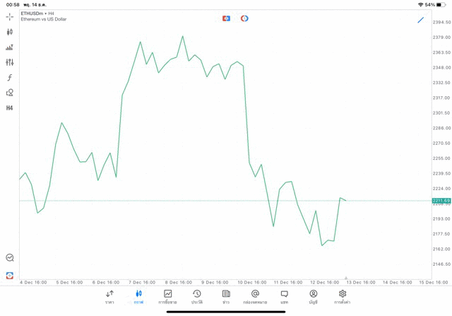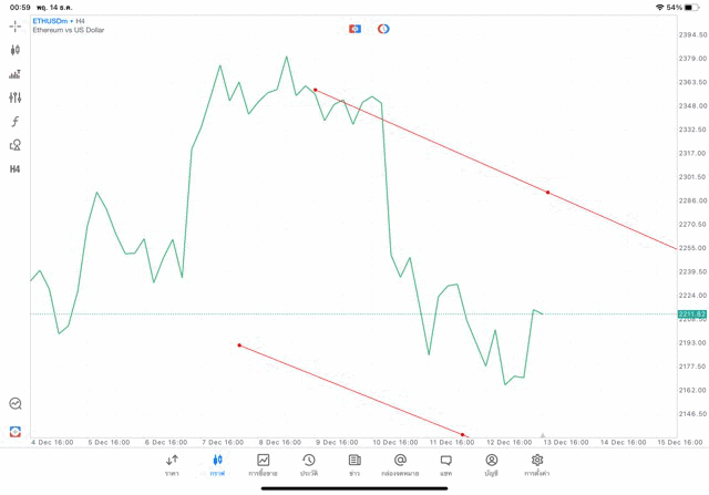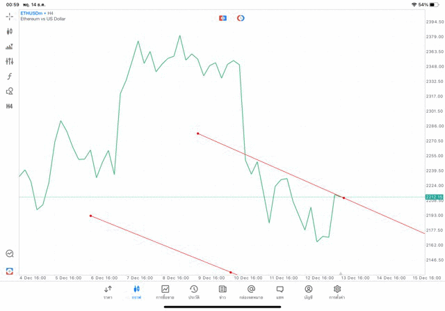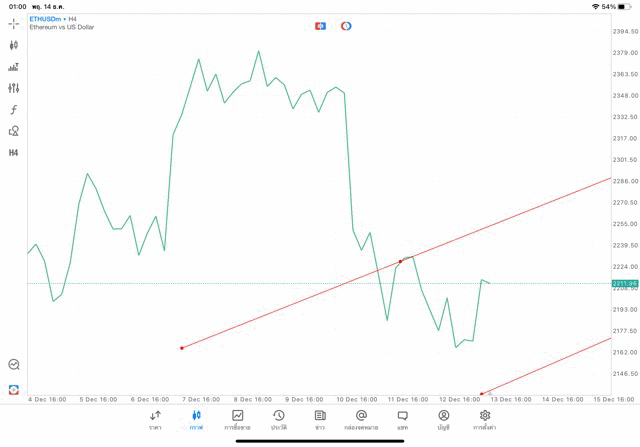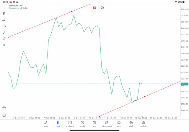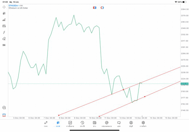 การวาด Tradeline H4 Crypto ETHUSD application Meta trader 5 หรือ mt5 โบรกเกอร์ forex exness