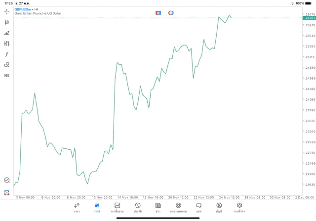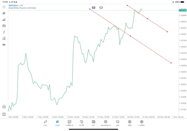 แผนภูมิ กราฟ ไทม์เฟรม 4 ชั่วโมง หรือ H4 GBPUSD หรือ Great Britain Pound vs US Dollar กรอบเวลา 4 ชั่วโมง