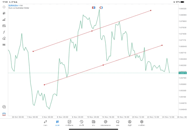 วิธีวาดเส้น Tradeline Forex EURAUD application Meta trader 5 หรือ mt5