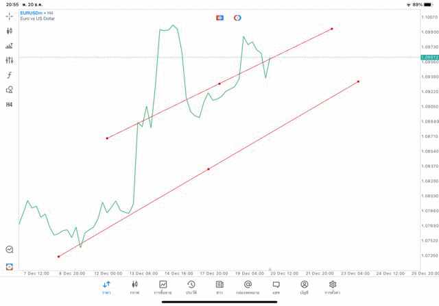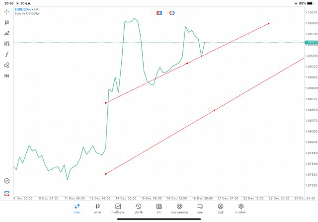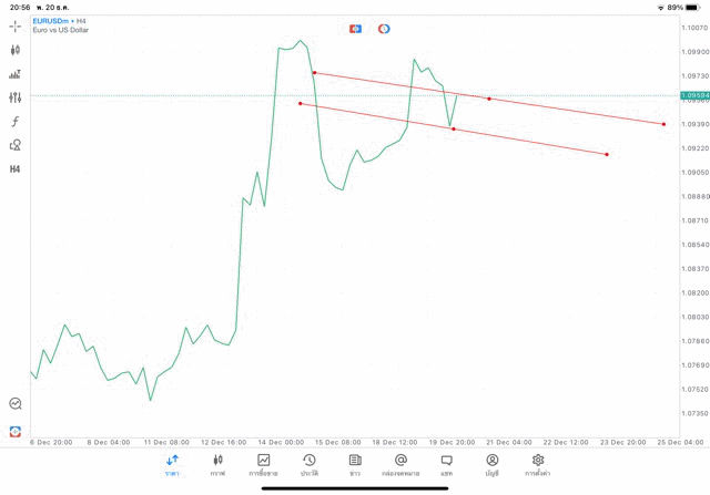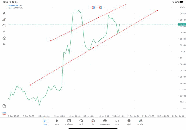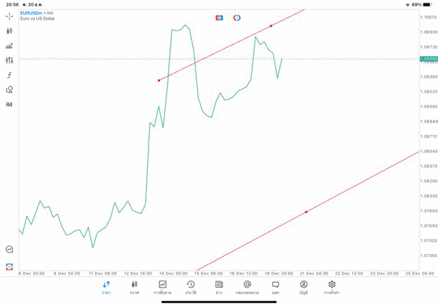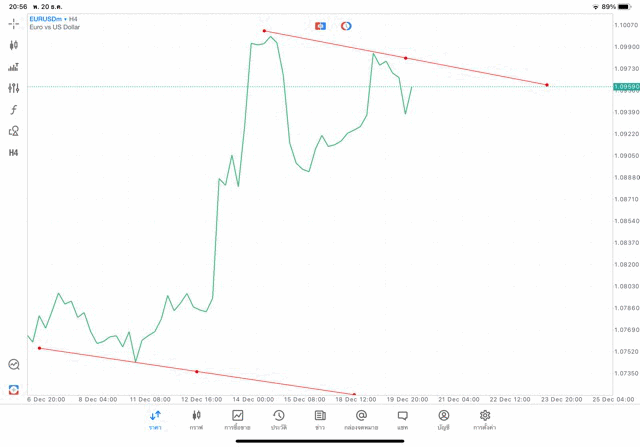 การวาด Tradeline H4 Forex EURUSD application Meta trader 5 หรือ mt5 โบรกเกอร์ forex exness