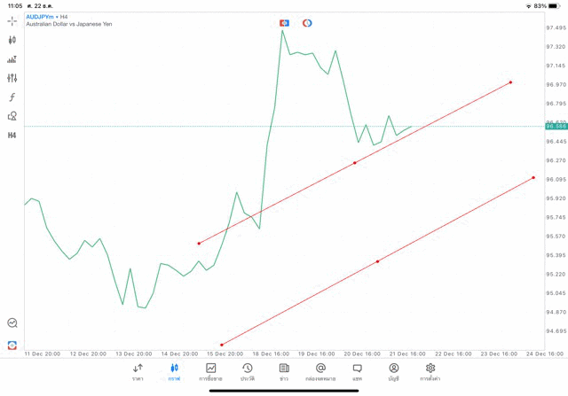 การวาด Tradeline H4 Forex AUDJPY application Meta trader 5 หรือ mt5 โบรกเกอร์ Forex exness