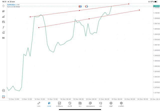 การวาด Tradeline H4 Forex EURUSD application Meta trader 5 หรือ mt5 โบรกเกอร์ forex exness