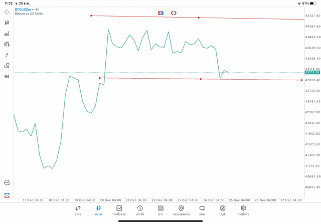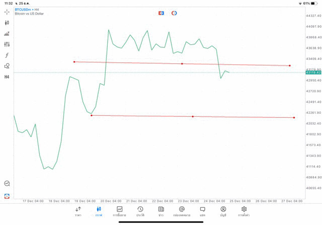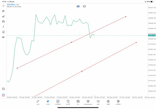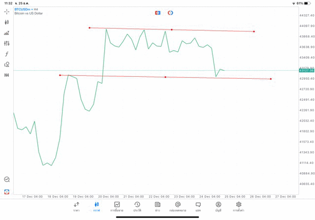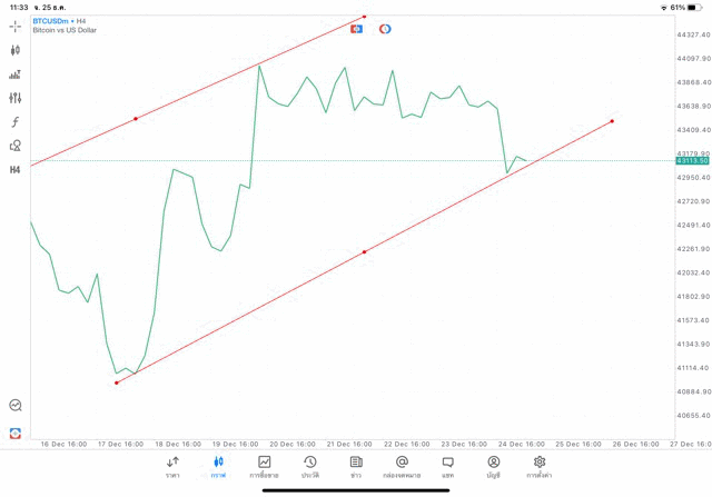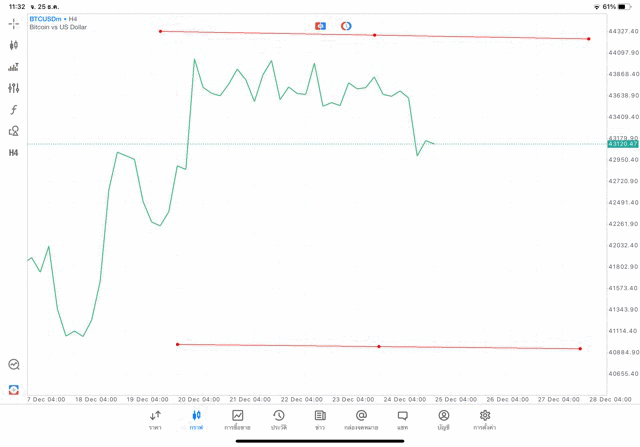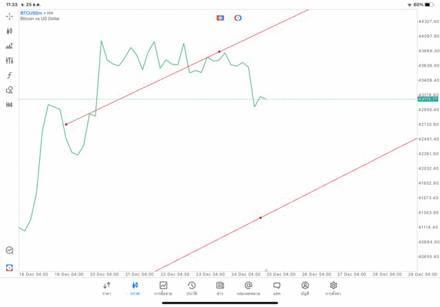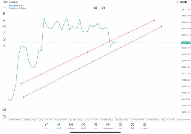 การวาด Tradeline H4 Crypto BTCUSD application Meta trader 5 หรือ mt5 โบรกเกอร์ forex exness
