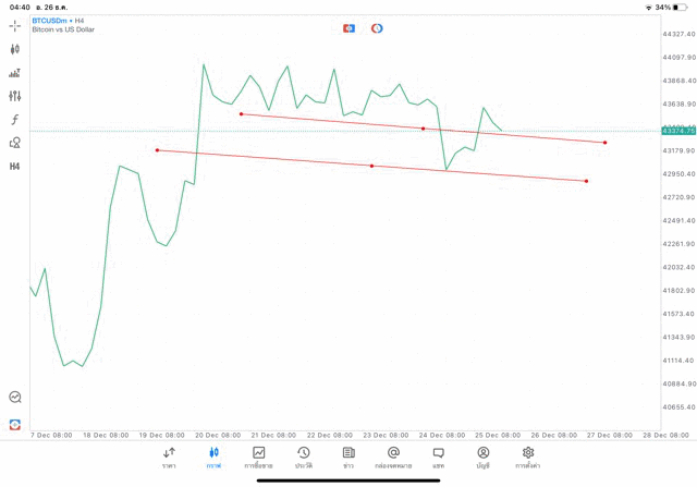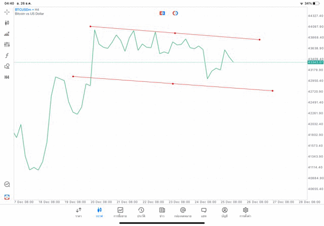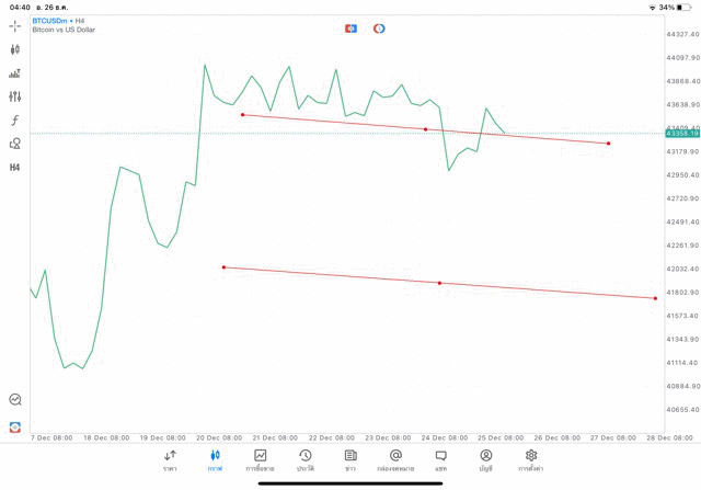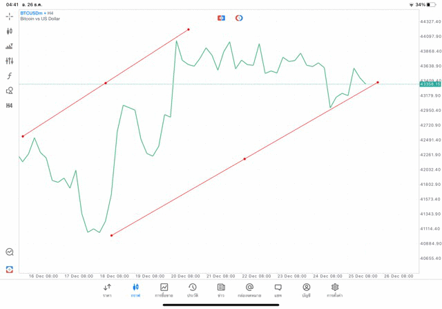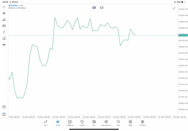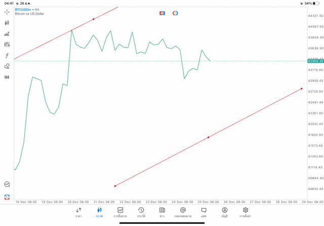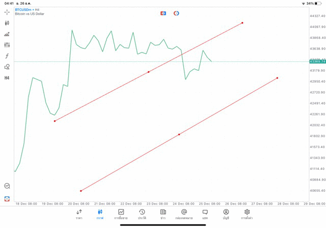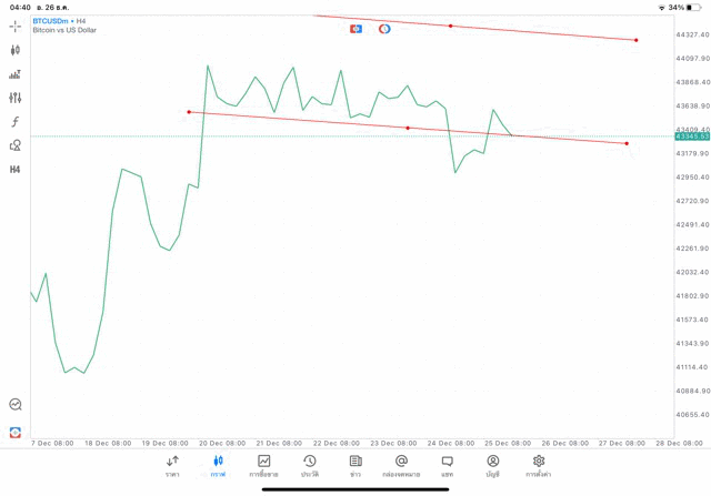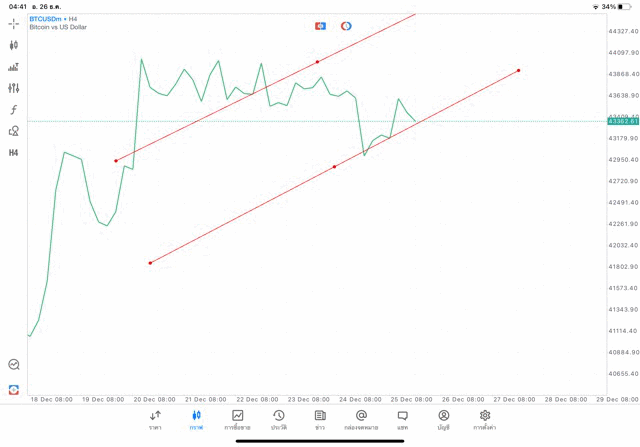 การวาด Tradeline H4 Crypto BTCUSD application Meta trader 5 หรือ mt5 โบรกเกอร์ forex exness