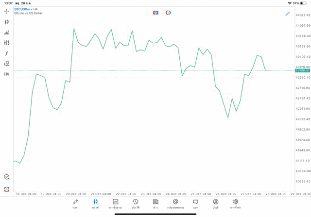 การวาด Tradeline หรือ Trendline H4 Crypto BTCUSD application Meta trader 5 หรือ mt5 โบรกเกอร์ forex exness