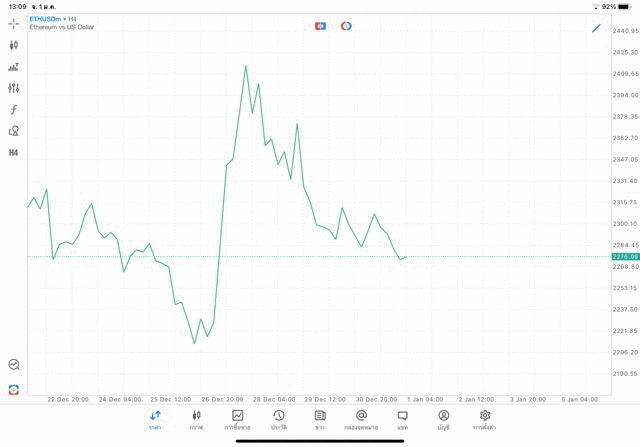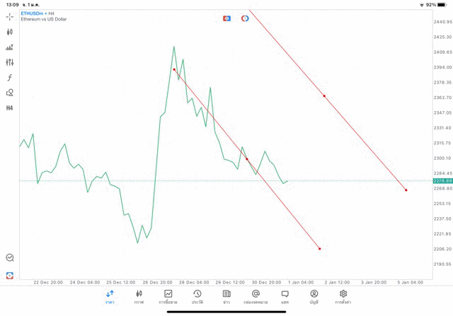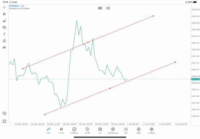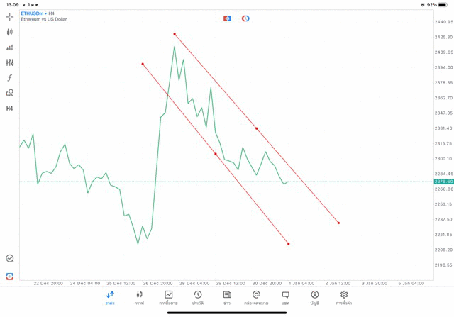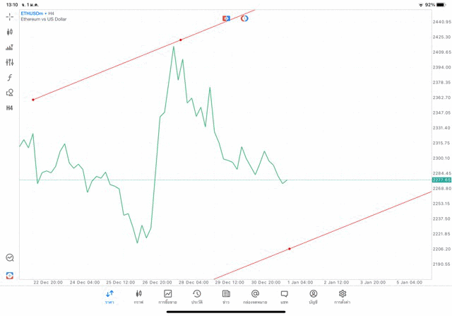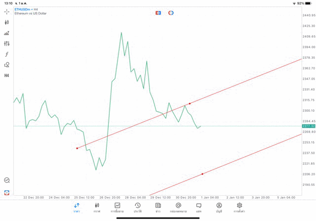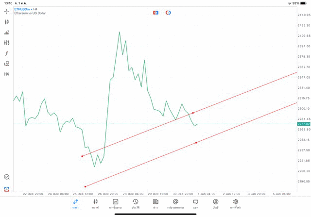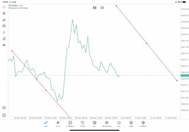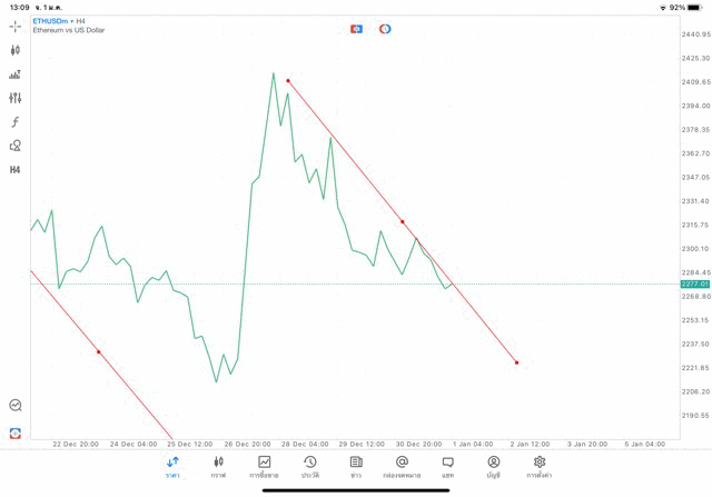 การวาด Trendline H4 Crypto ETHUSD application Meta trader 5 หรือ mt5 โบรกเกอร์ forex exness