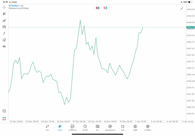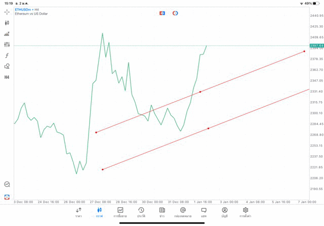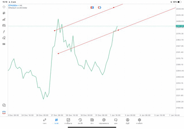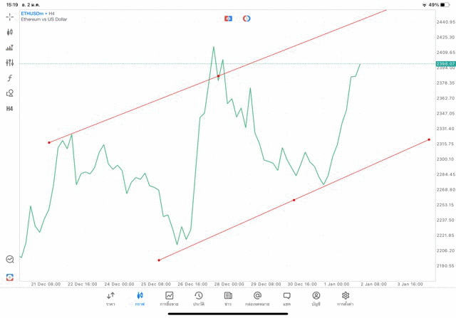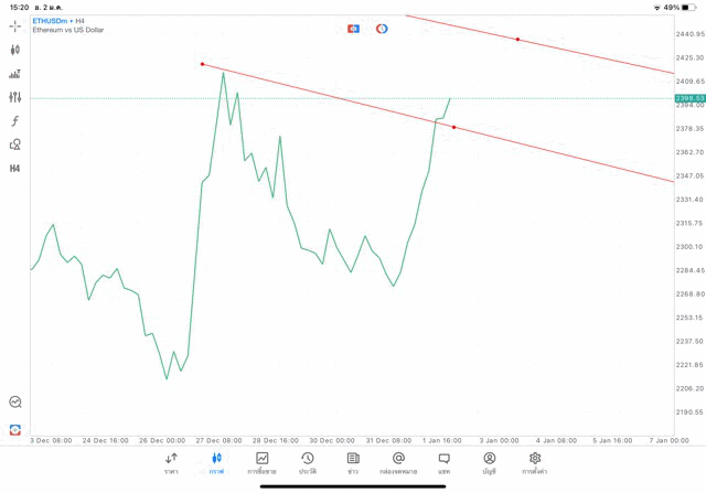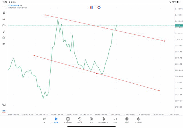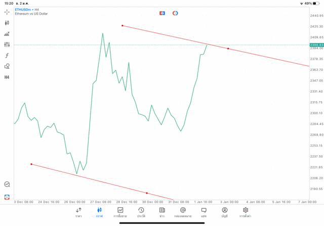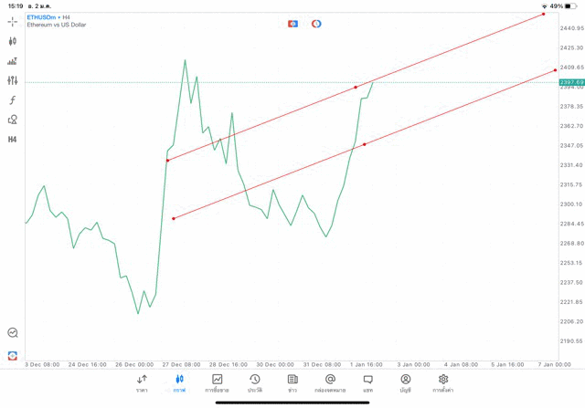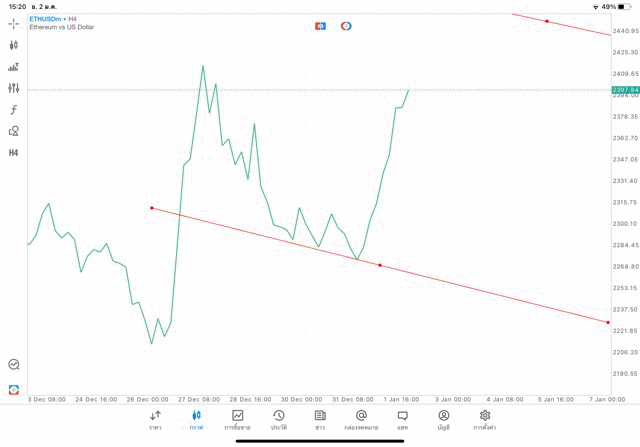 การวาด Trendline H4 Crypto ETHUSD application Meta trader 5 หรือ mt5 โบรกเกอร์ forex exness