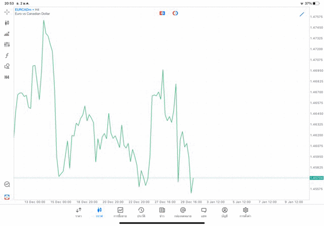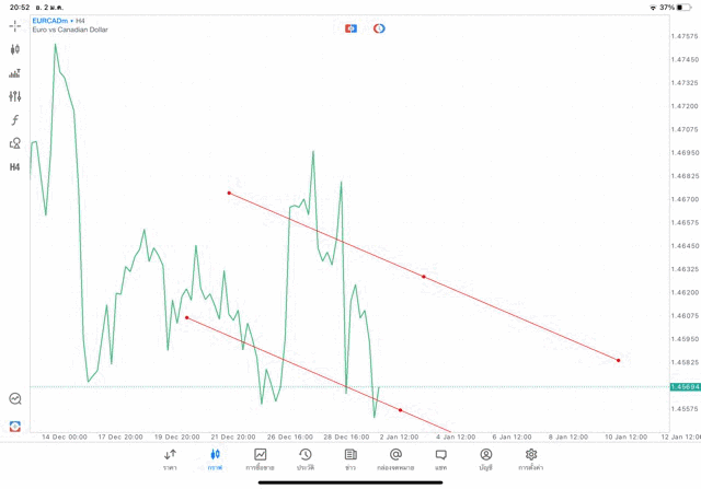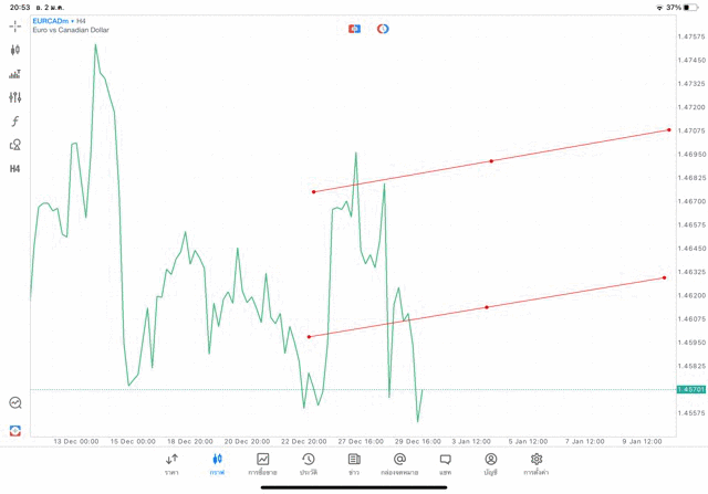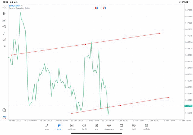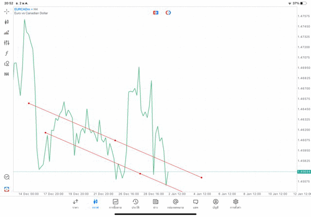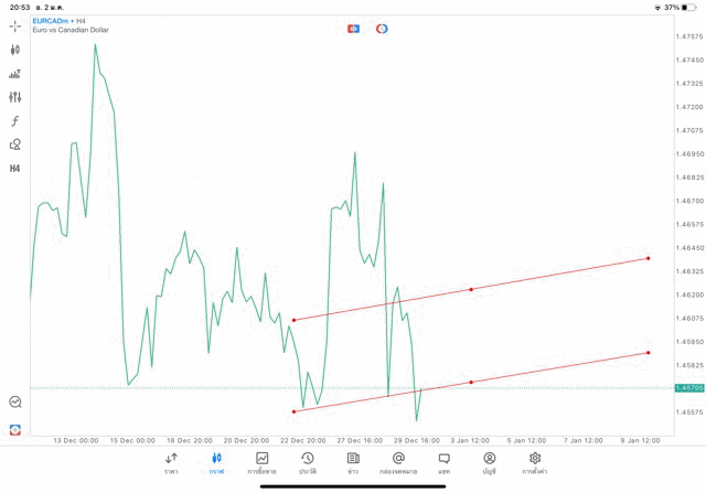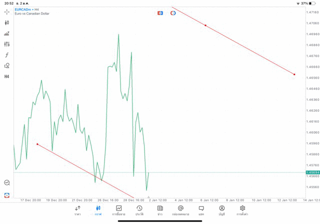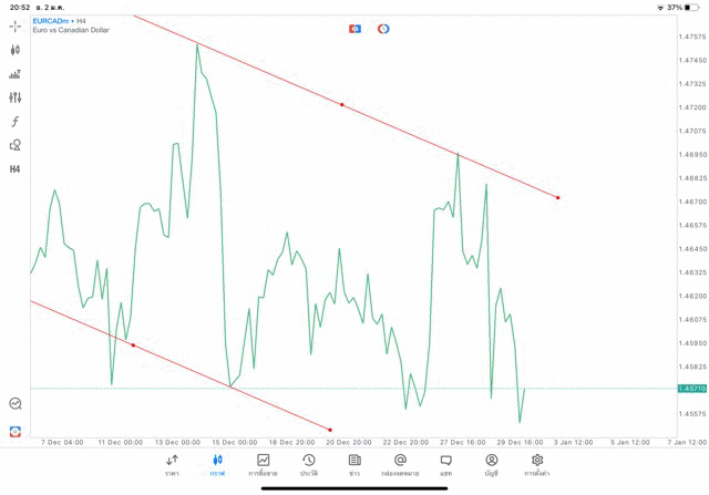 การวาด Trendline H4 Forex EURCAD application Meta trader 5 หรือ mt5 โบรกเกอร์ forex exness
