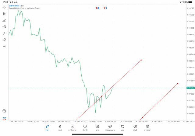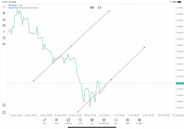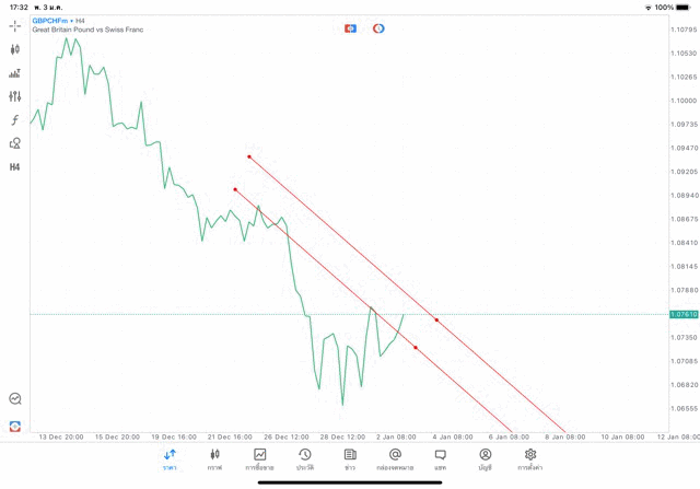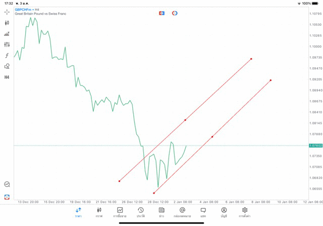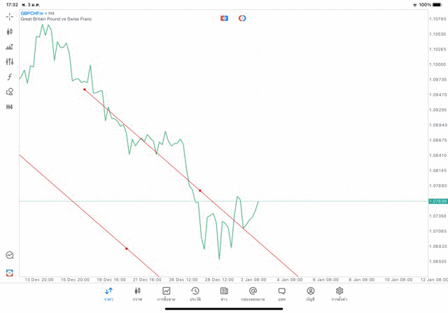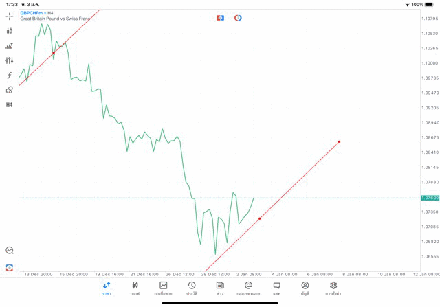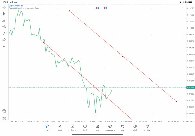 การวาด Trendline H4 Forex GBPCHF application Meta trader 5 หรือ mt5