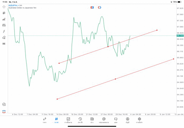 การวาด Trendline H4 Forex AUDJPY application Meta trader 5 หรือ mt5 โบรกเกอร์ Forex exness