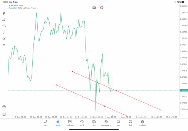 การวาด Trendline H4 Forex AUDCHF application Meta trader 5 หรือ mt5 โบรกเกอร์ Forex exness
