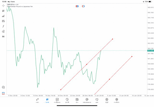 การวาด Trendline H4 Forex GBPJPY application Meta trader 5 หรือ mt5 โบรกเกอร์ forex exness