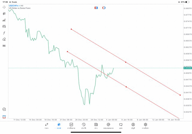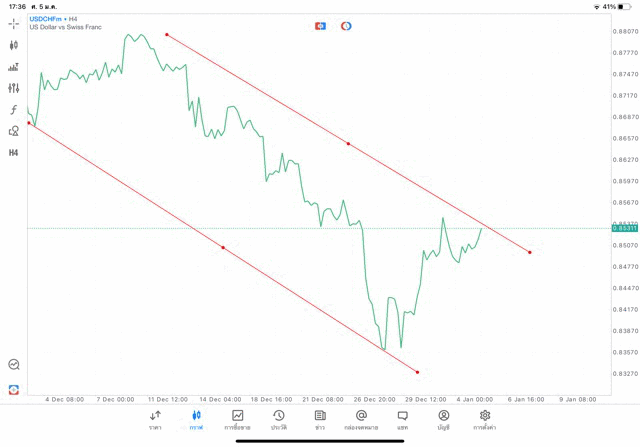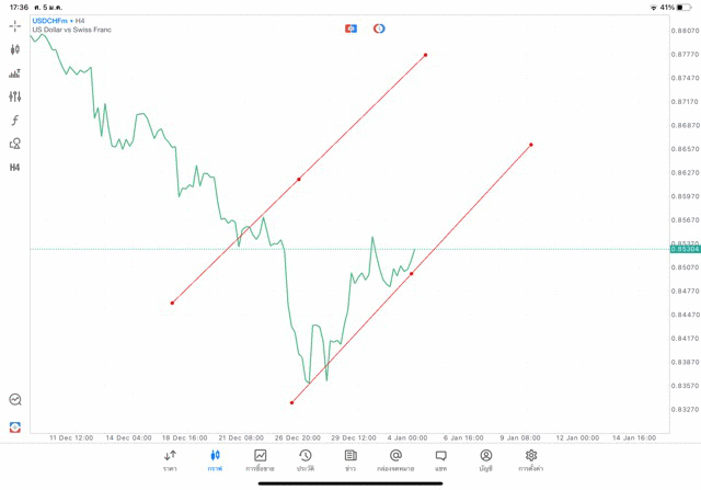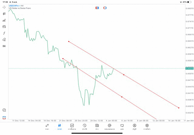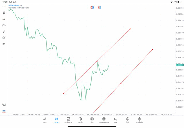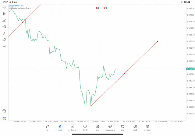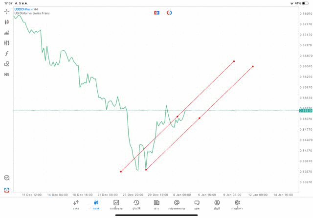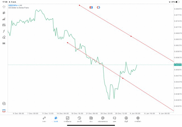 การวาด Trendline H4 Forex USDCHF application Meta trader 5 หรือ mt5
