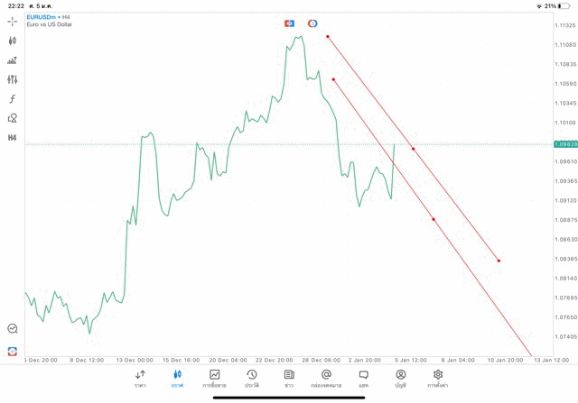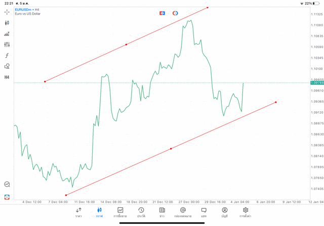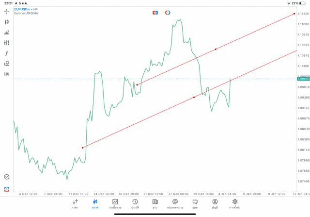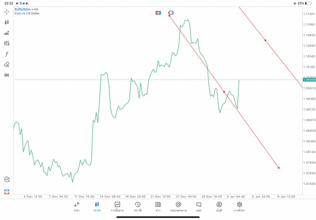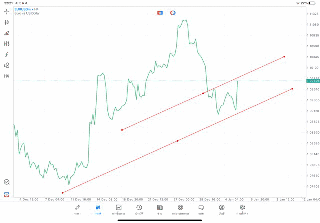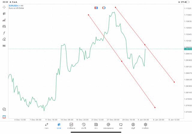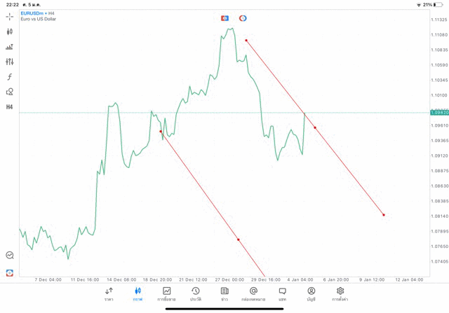 การวาด Trendline H4 Forex EURUSD application Meta trader 5 หรือ mt5 โบรกเกอร์ forex exness