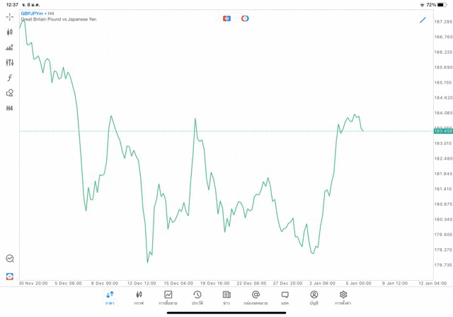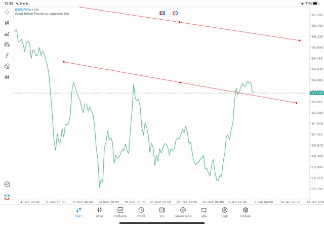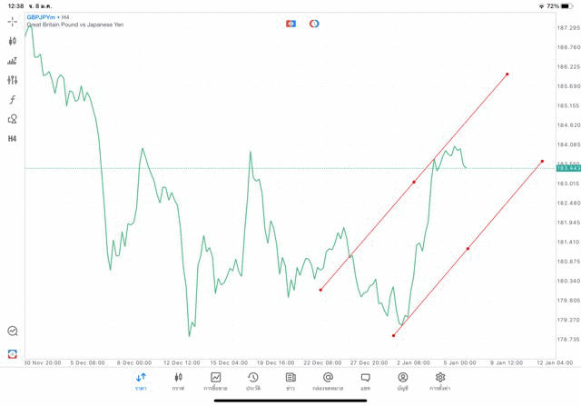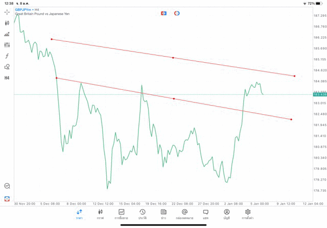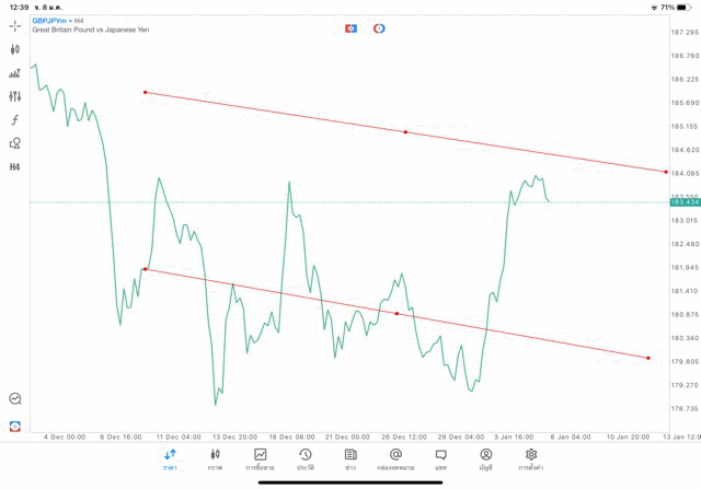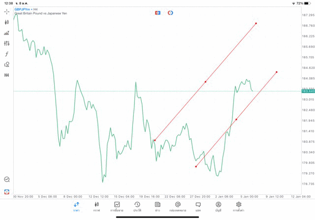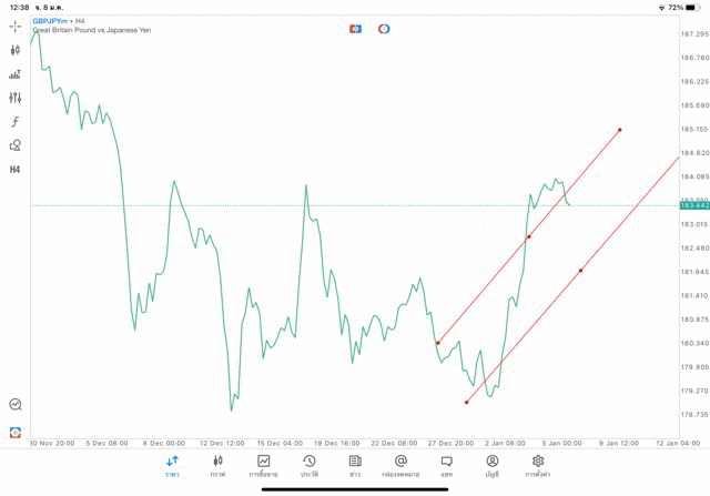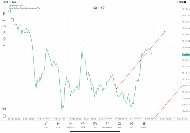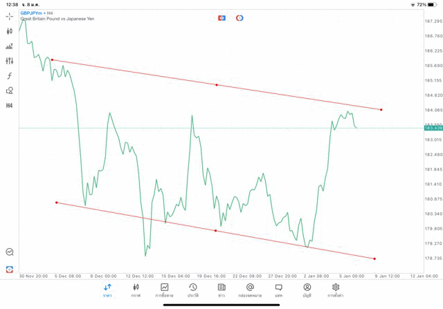 การวาด Trendline H4 Forex GBPJPY application Meta trader 5 หรือ mt5 โบรกเกอร์ forex exness