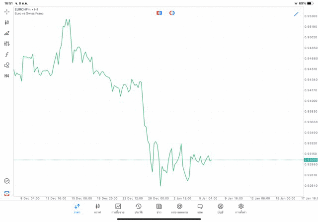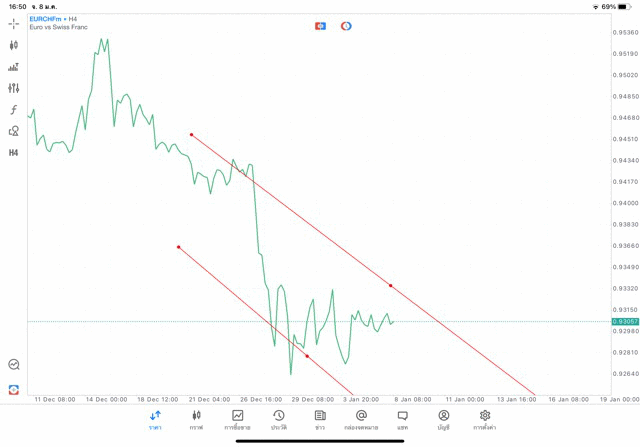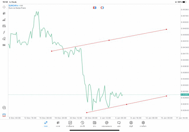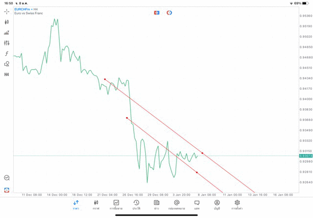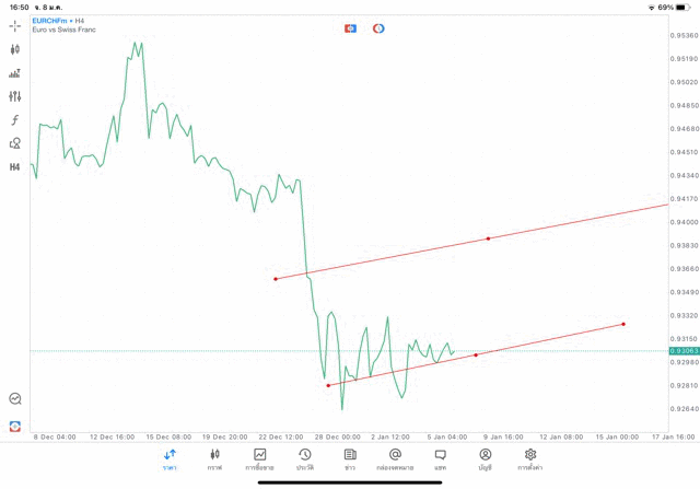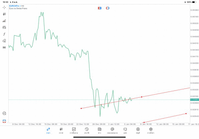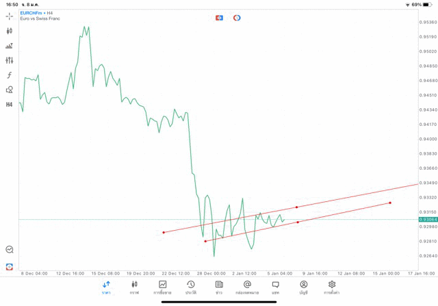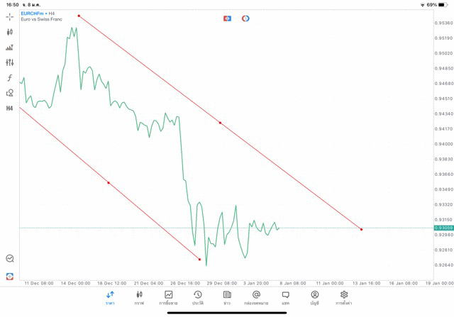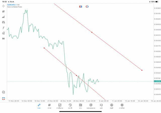 การวาด Trendline H4 Forex EURCHF application Meta trader 5 หรือ mt5 โบรกเกอร์ forex exness