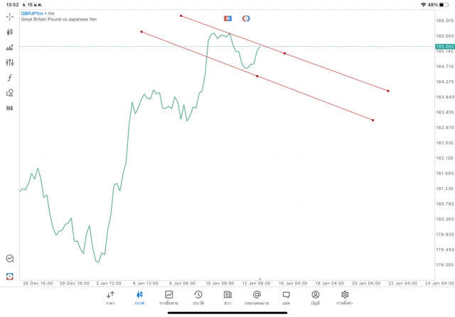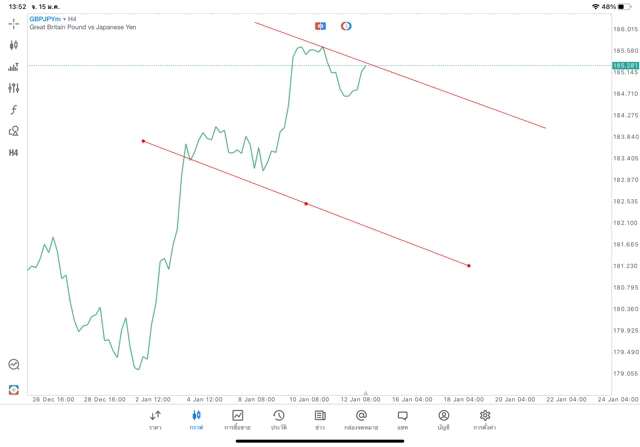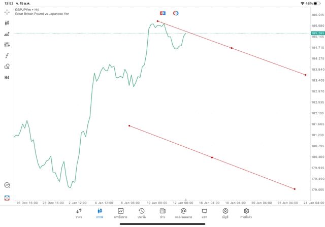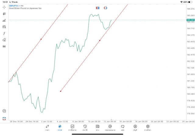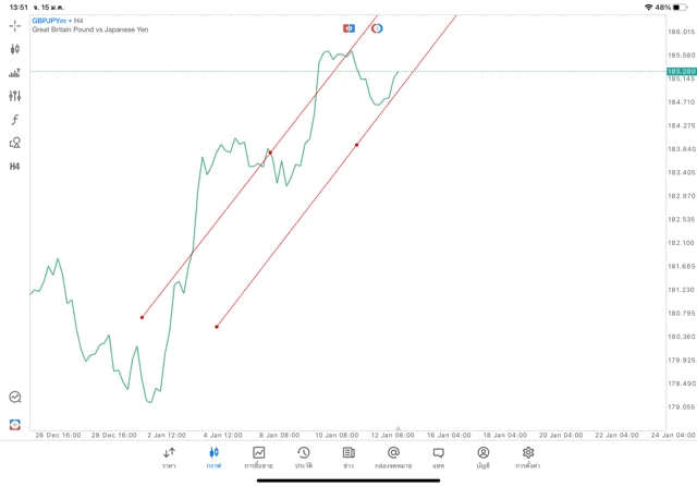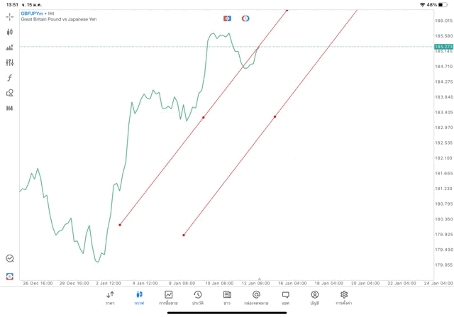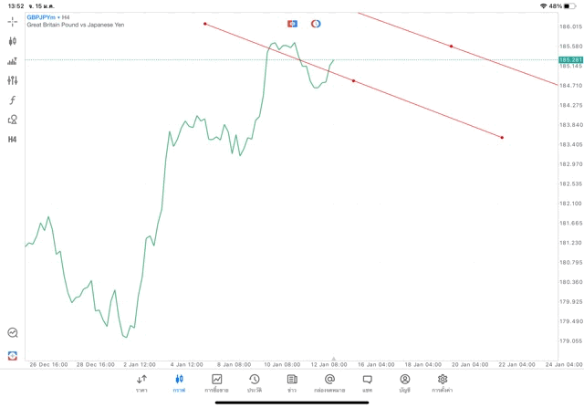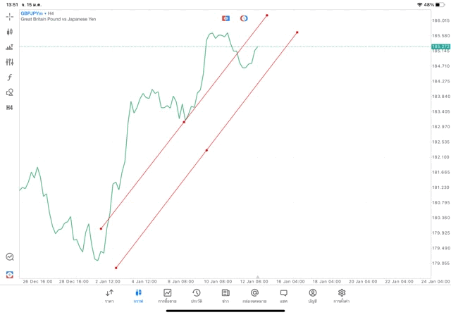 การวาด Trendline H4 Forex GBPJPY application Meta trader 5 หรือ mt5 โบรกเกอร์ forex exness