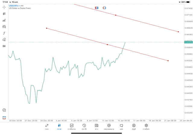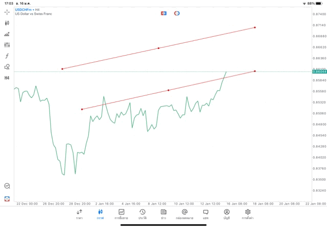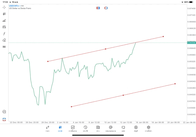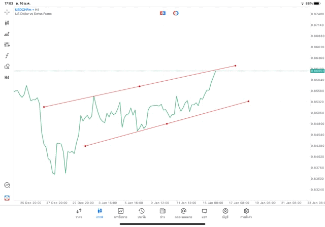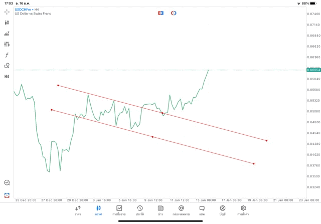 การวาด Trendline H4 Forex USDCHF application Meta trader 5 หรือ mt5
