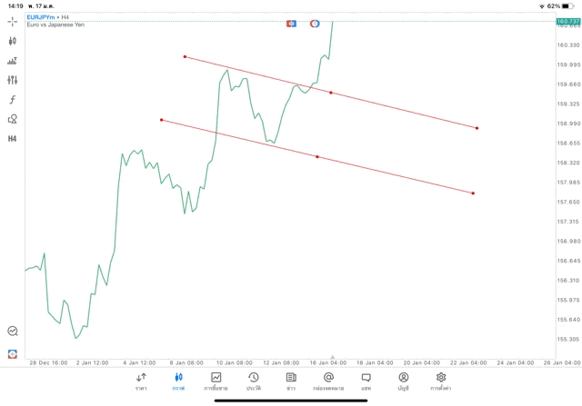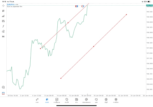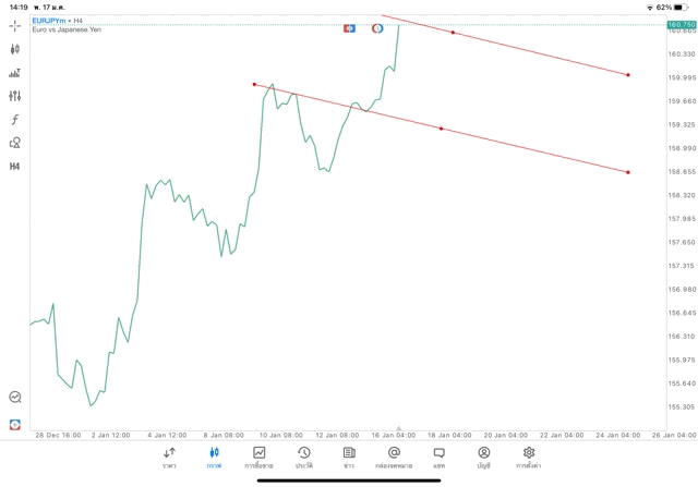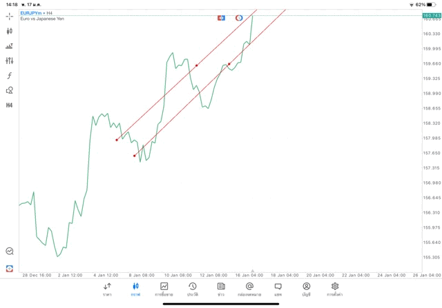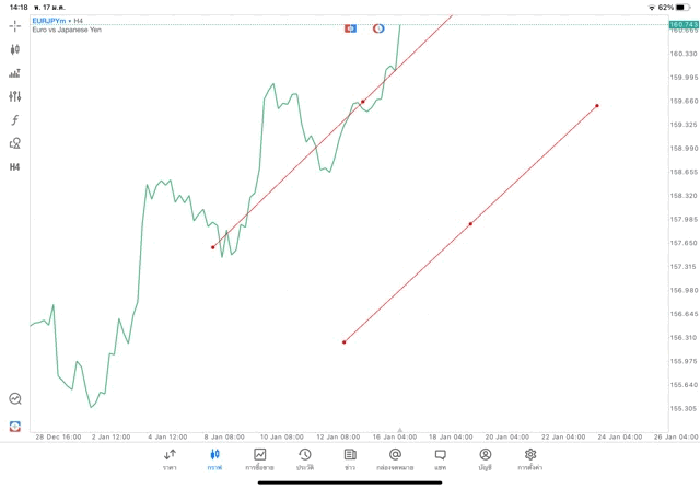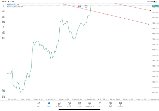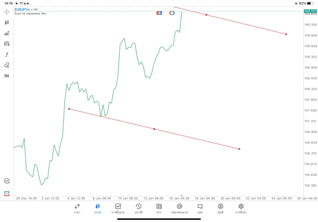 การวาด Trendline H4 Forex EURJPY application Meta trader 5 หรือ mt5 โบรกเกอร์ Forex exness