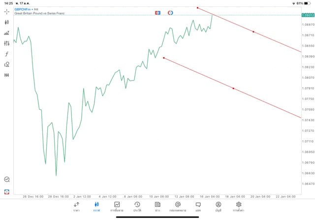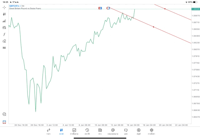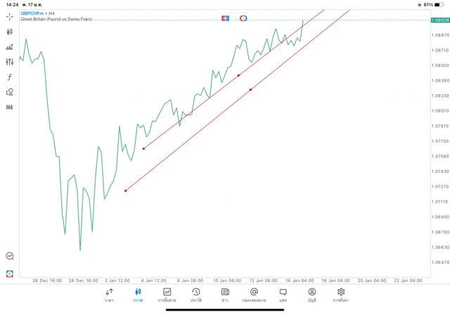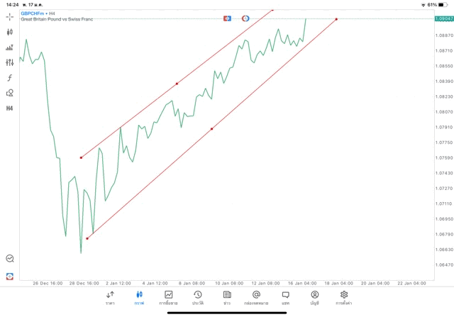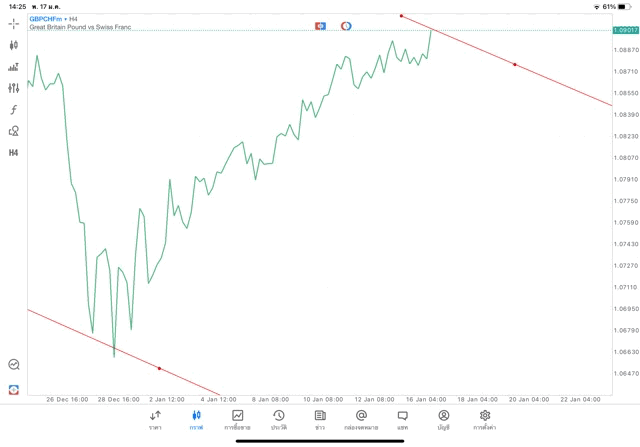 การวาด Trendline H4 Forex GBPCHF application Meta trader 5 หรือ mt5