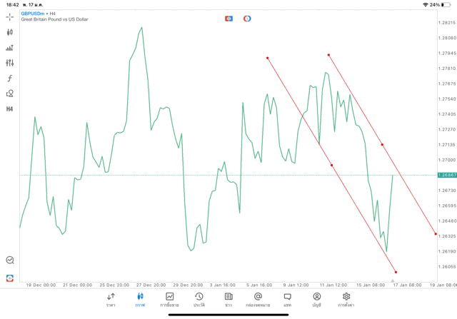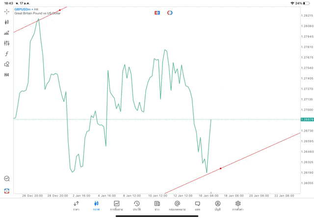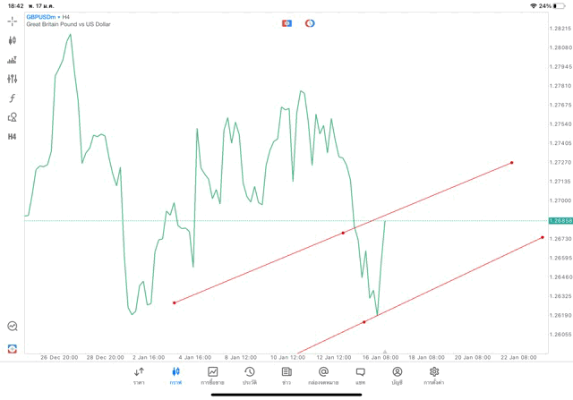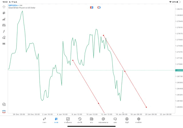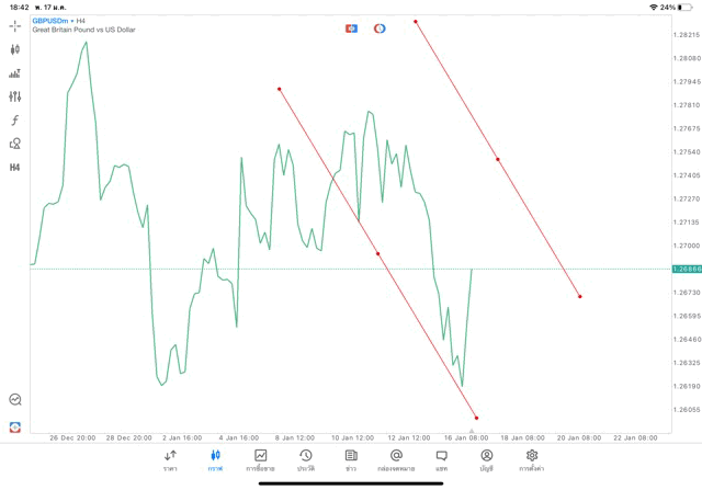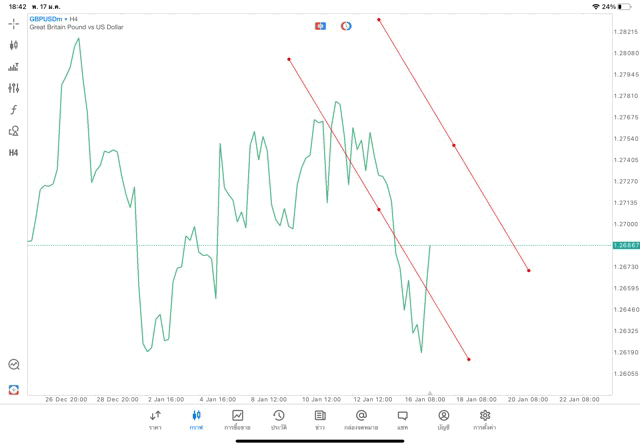 การวาด Trendline H4 Forex GBPUSD application Meta trader 5 หรือ mt5 โบรกเกอร์ forex exness
