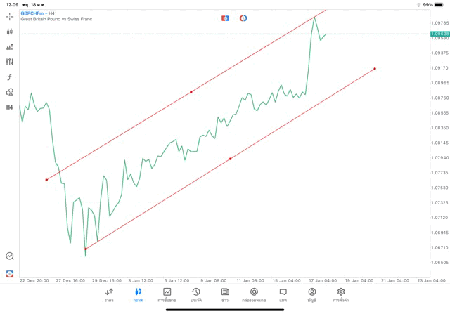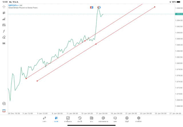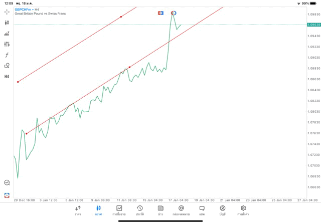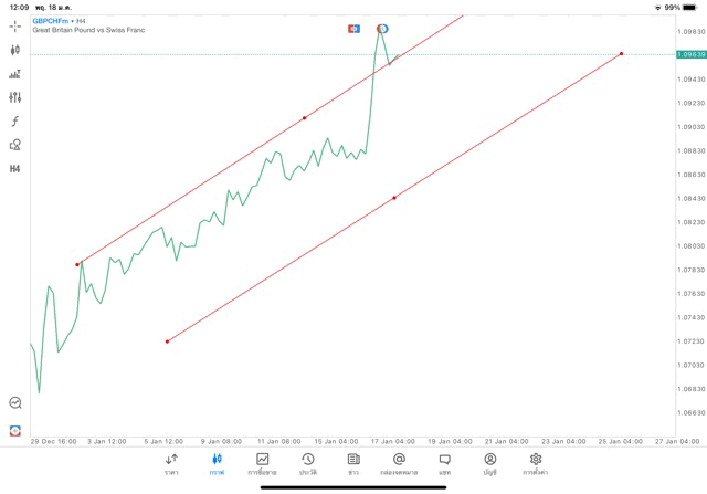 การวาด Trendline H4 Forex GBPCHF application Meta trader 5 หรือ mt5