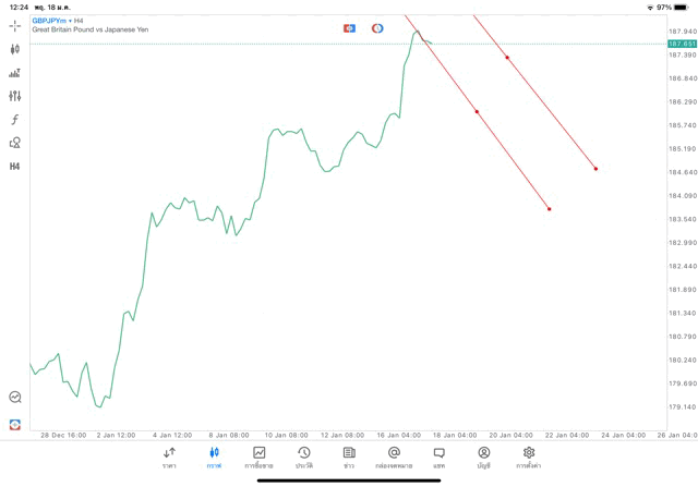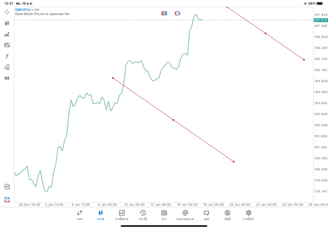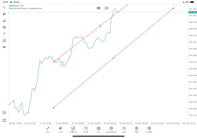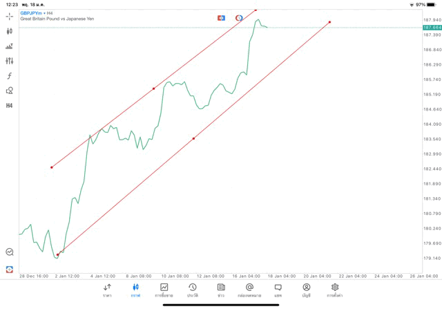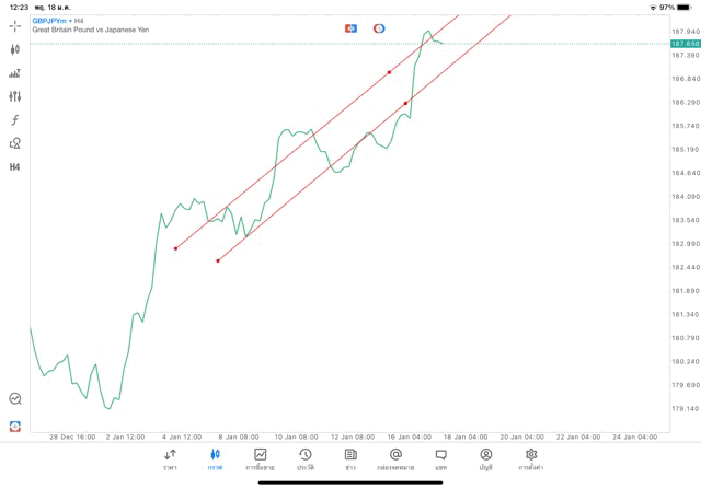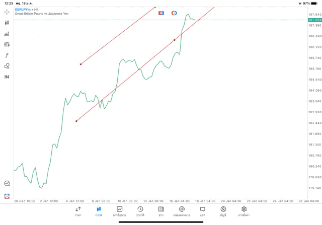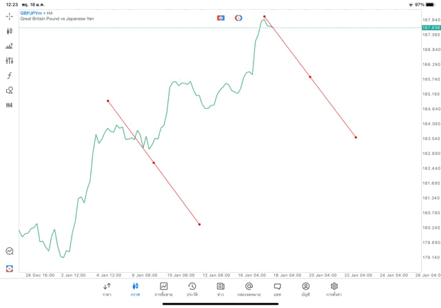 การวาด Trendline H4 Forex GBPJPY application Meta trader 5 หรือ mt5 โบรกเกอร์ forex exness