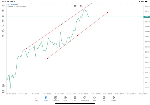 การวาด Trendline H4 Forex USDCAD application Meta trader 5 หรือ mt5