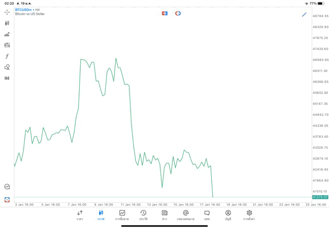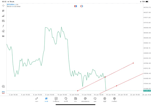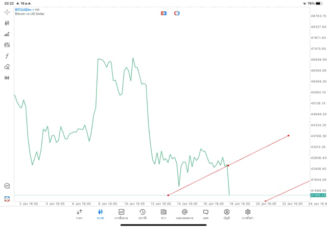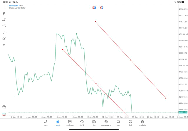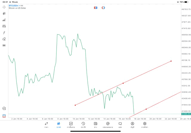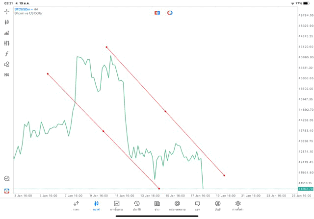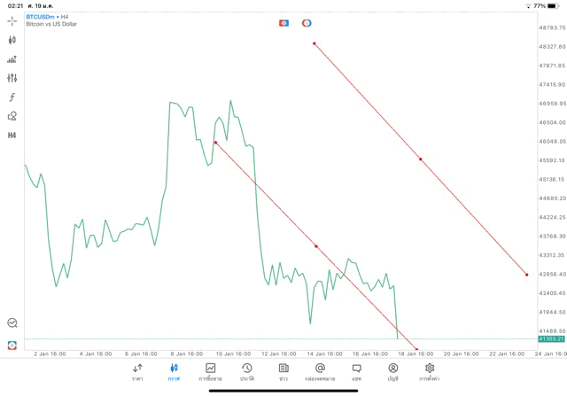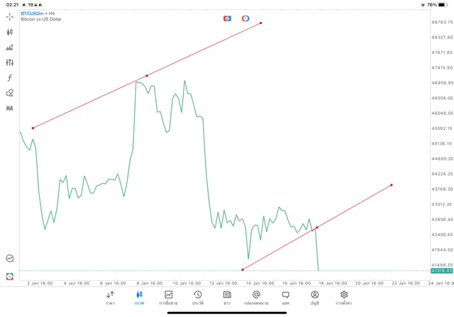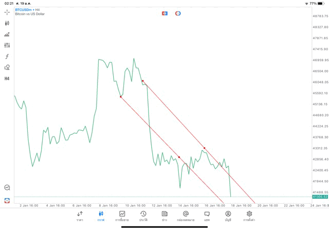 การวาด Trendline H4 Crypto BTCUSD application Meta trader 5 หรือ mt5 โบรกเกอร์ forex exness