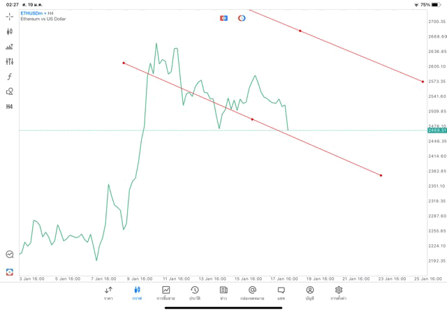 การวาด Trendline H4 Crypto ETHUSD application Meta trader 5 หรือ mt5 โบรกเกอร์ forex exness