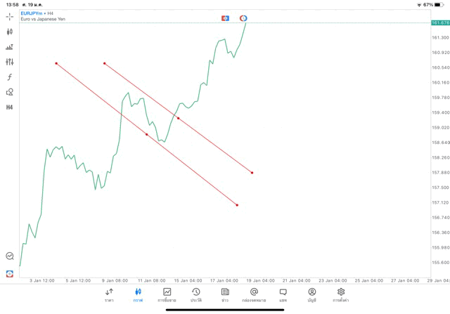 การวาด Trendline H4 Forex EURJPY application Meta trader 5 หรือ mt5 โบรกเกอร์ Forex exness