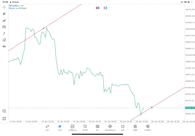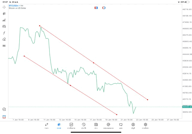 การวาด Trendline H4 Crypto BTCUSD application Meta trader 5 หรือ mt5 โบรกเกอร์ forex exness
