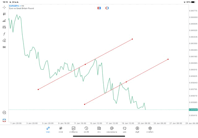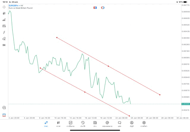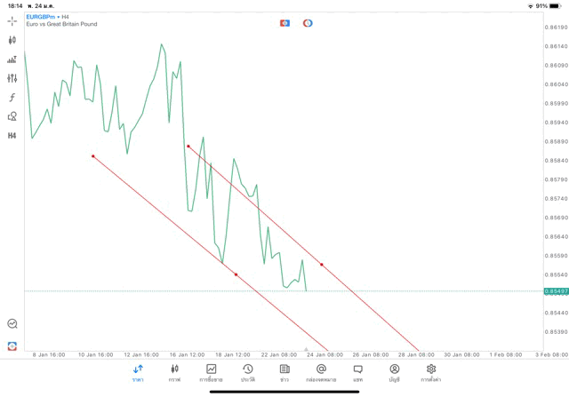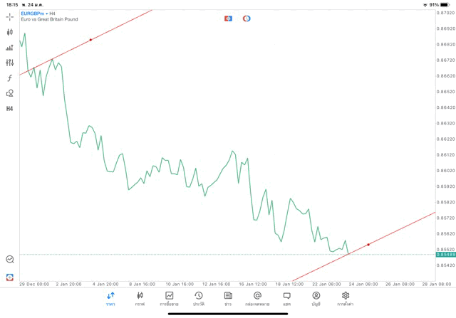 การวาด Trendline H4 Forex EURGBP application Meta trader 5 หรือ mt5 โบรกเกอร์ forex exness