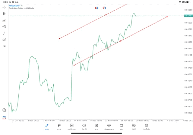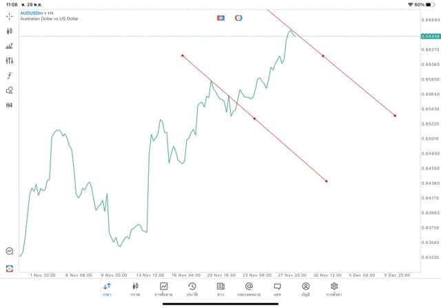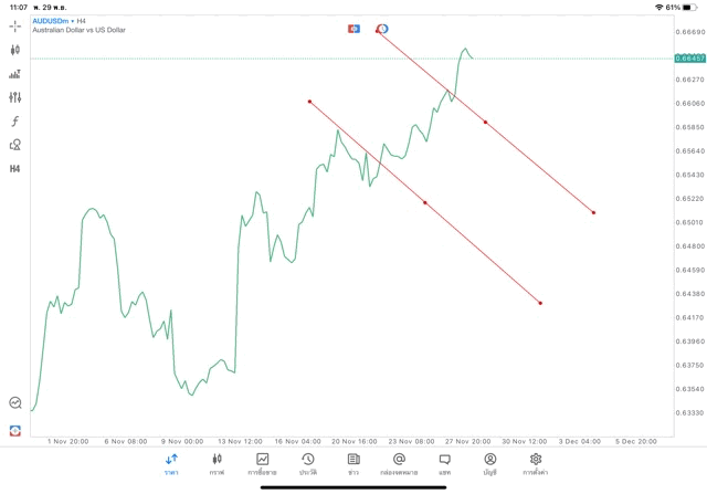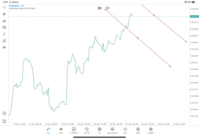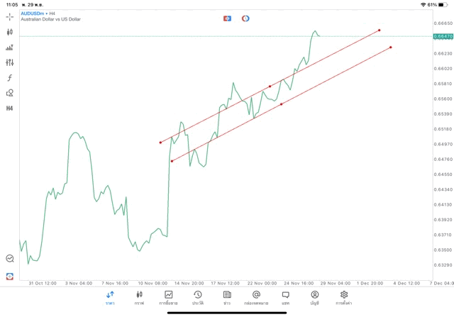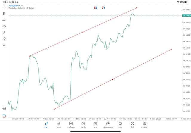 การวาด Tradeline H4 Forex AUDUSD application Meta trader 5 หรือ mt5 โบรกเกอร์ Forex exness