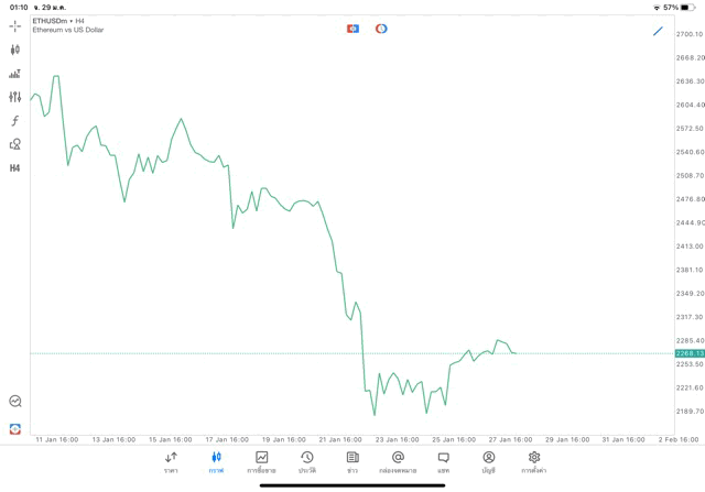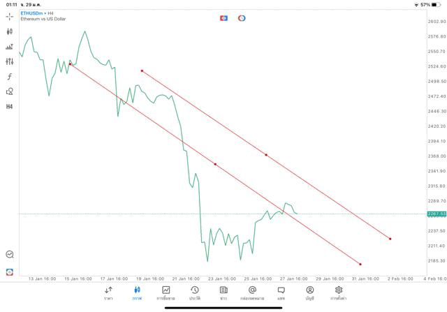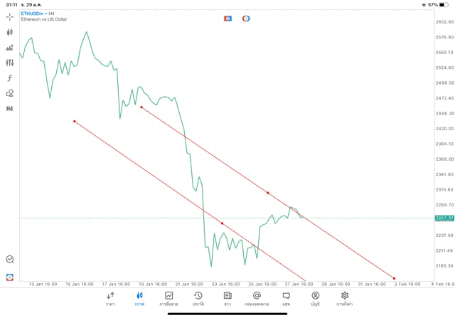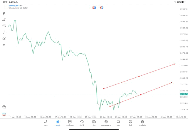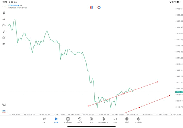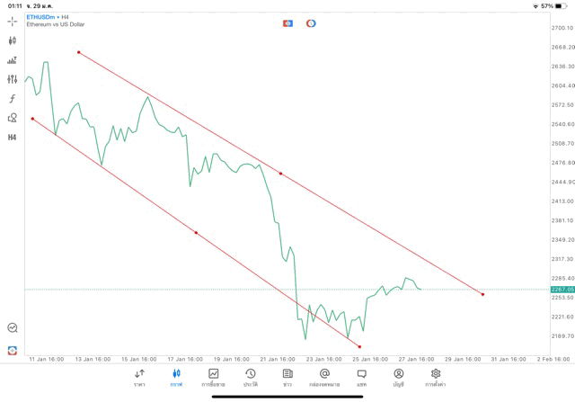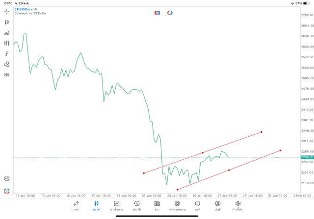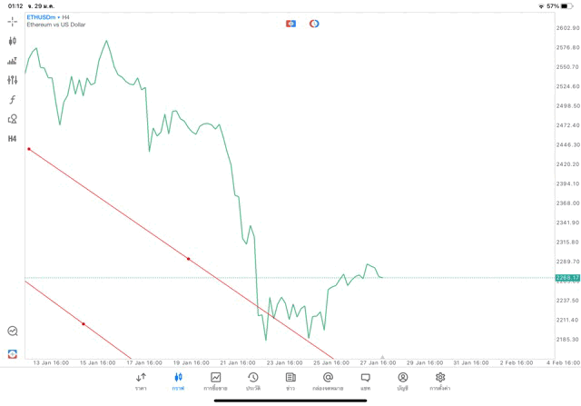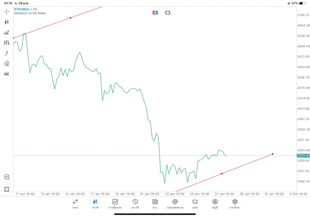 การวาด Trendline H4 Crypto ETHUSD application Meta trader 5 หรือ mt5 โบรกเกอร์ forex exness