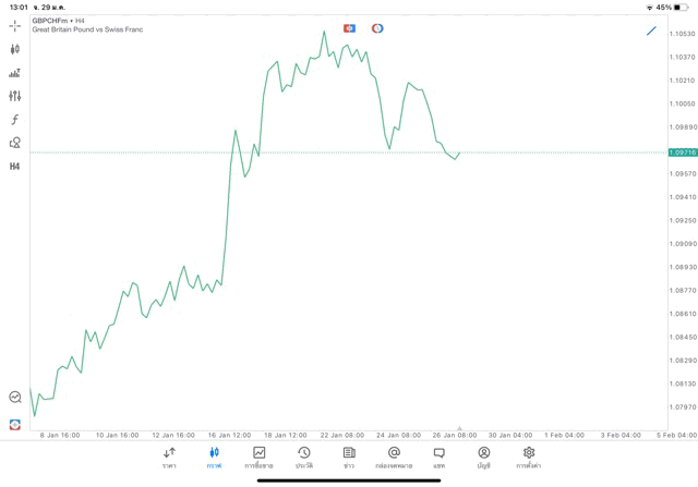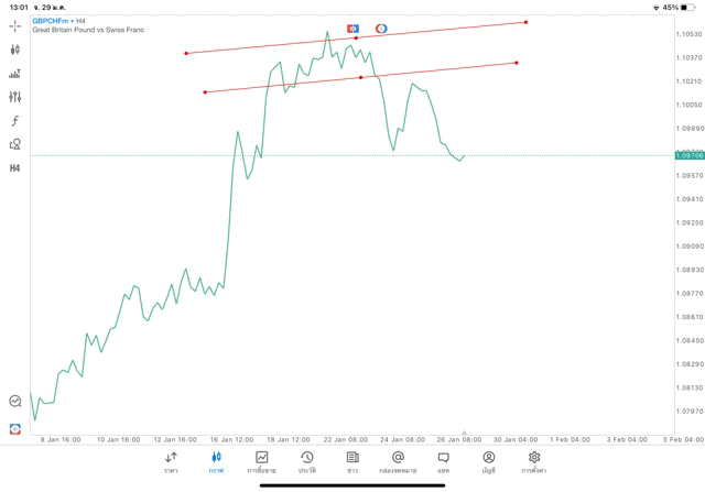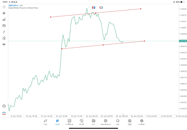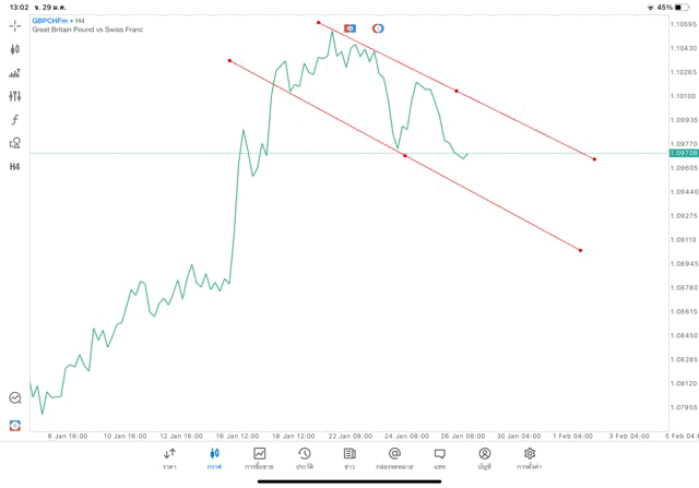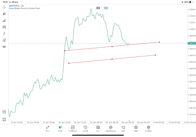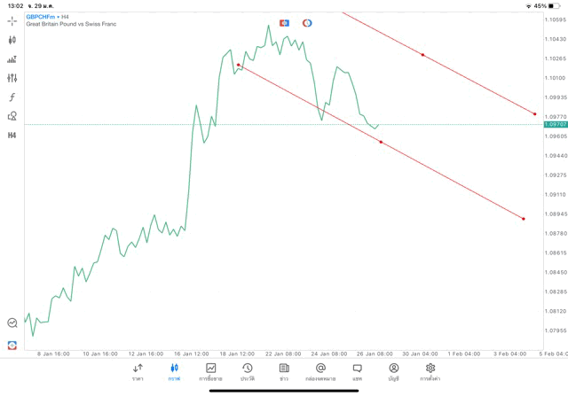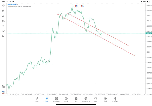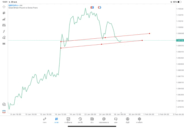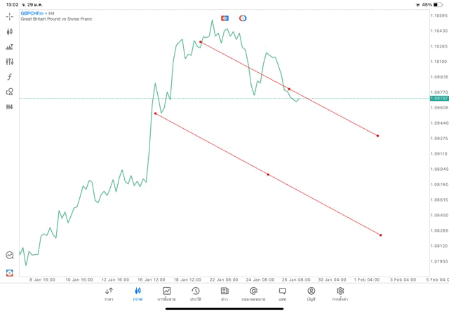 การวาด Trendline H4 Forex GBPCHF application Meta trader 5 หรือ mt5