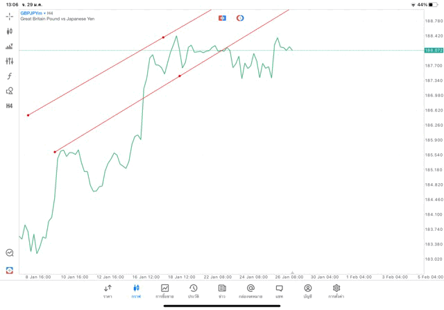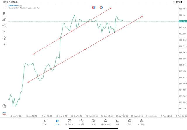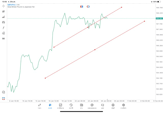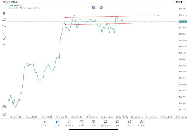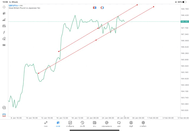 การวาด Trendline H4 Forex GBPJPY application Meta trader 5 หรือ mt5 โบรกเกอร์ forex exness